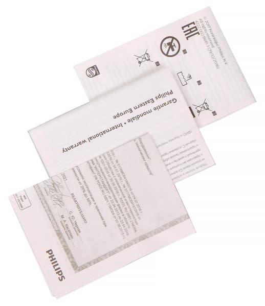 Руководство пользователя, традиционно для новой продукции Philips, оформлено в виде безъязыкого «комикса» — все возможные действия с прибором разъясняются с помощью картинок. Нам этот новомодный подход не очень нравится, т. к. последовательность слов не некоем языке можно сделать такой, чтобы двояким трактовкам она подвергнута быть не могла, а вот что каждый в меру своей фантазии разглядит на рисунке — это предсказать практически невозможно.