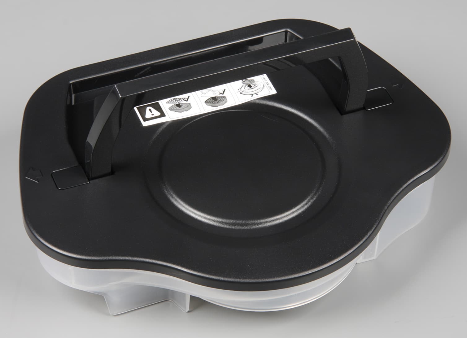 Под крышкой обнаруживается собственно пылесборник, который вытаскивается из внутренностей робота за откидывающуюся ручку.