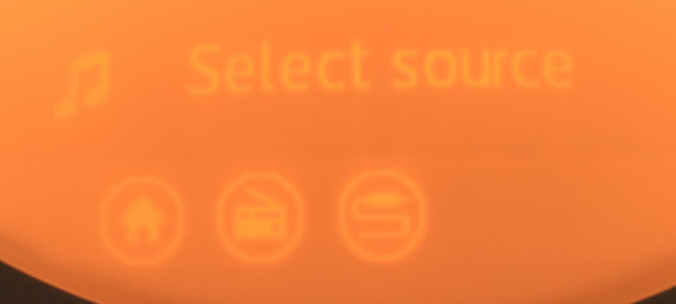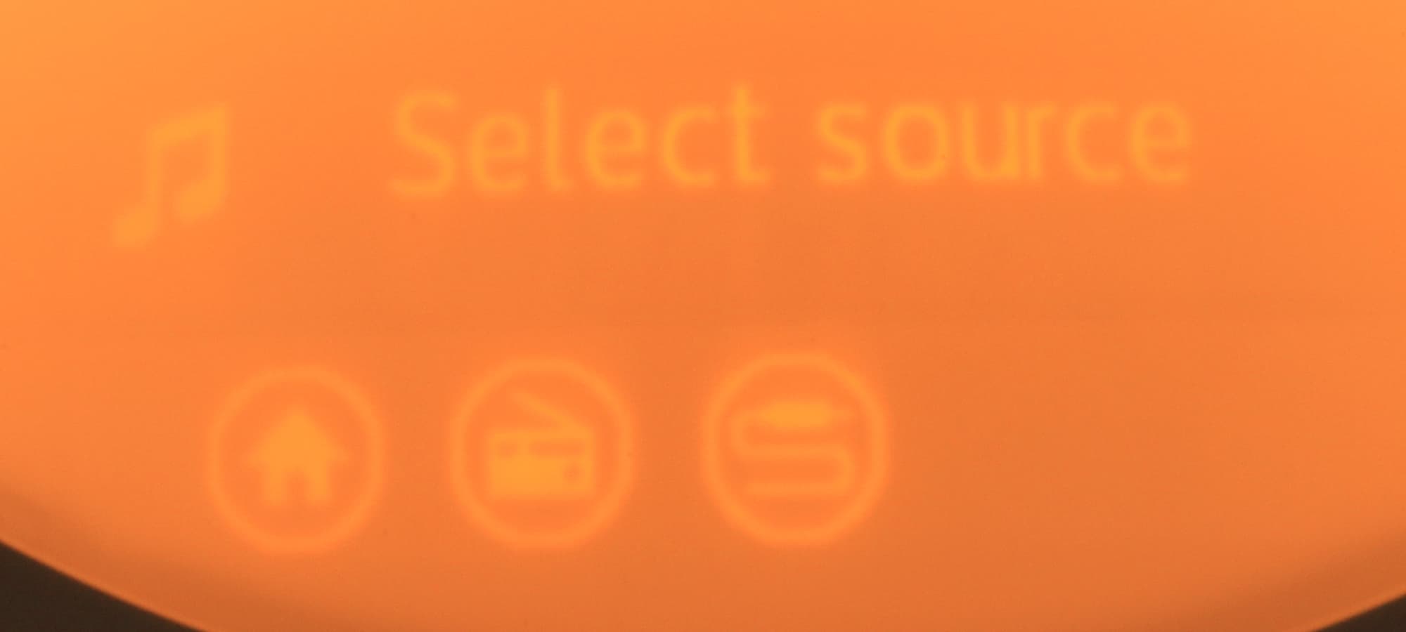 Кнопка с изображением нот служит для доступа к меню проигрывания музыки, причем при нажатии кнопки сразу начинается воспроизведение. Музыку можно выбрать из двух источников: с подключенного через гнездо Aux устройства пользователя, где регулируется только интенсивность звука, и через встроенный FM-радиоприемник.