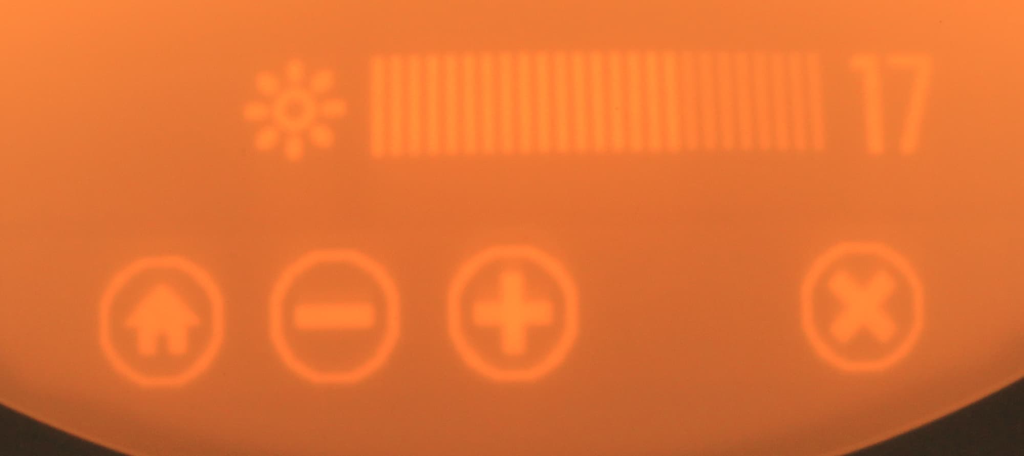 Вторая слева кнопка с изображением солнышка (или иного источника света) включает лампу для чтения и показывает настройки яркости для нее от 1 (тускло-желтый) до 25 (очень яркий белый). Выключается лампа либо крестиком в этом же меню, либо касанием сенсорной кнопки на верхней части задней панели устройства. Свет включается и выключается плавно.