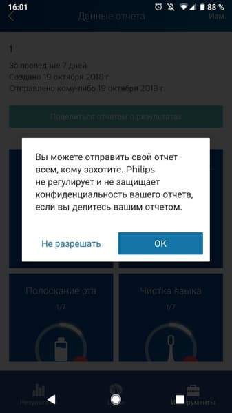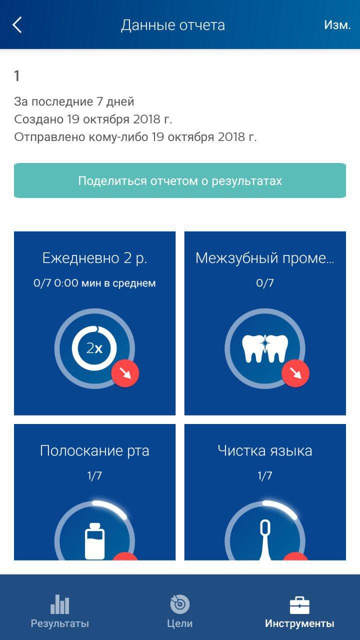 Результаты чистки за определенный вами период можно сохранить, отправить стоматологу и там же, в приложении, спланировать визит к этому специалисту. Не уверены, что в нашей действительности это широко распространено, но если у вас постоянный зубной врач и с ним можно связаться в каком-то из приложений, установленных на вашем телефоне, вы можете создать отчет и расшарить его — да хоть в ленте своего инстаграма.