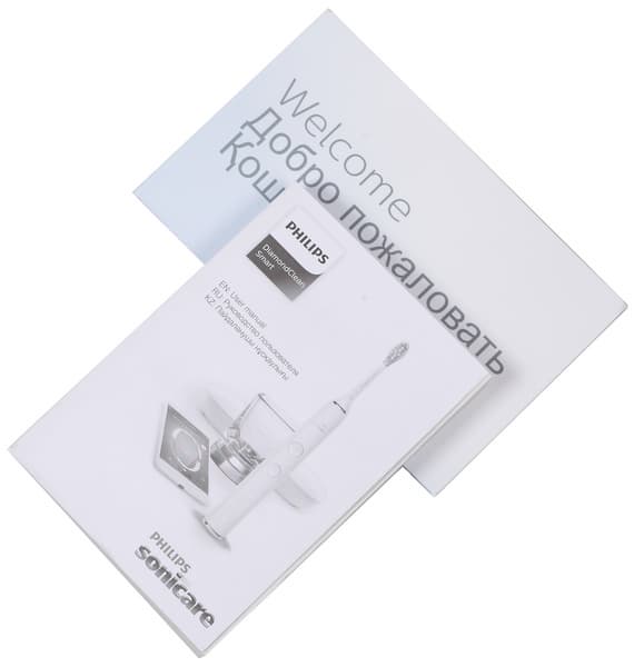 Сопровождающая документация исчерпывающе знакомит нас со всеми возможностями зубной щетки, однако некоторые данные, касающиеся конкретной модели, вынесены в приветственную брошюру или в дополнение к руководству. Понятно, что это вызвано необходимостью печатать один гайд для нескольких моделей, однако пользователя такая экономия вынудит хранить три довольно разных буклета, один из которых весьма объемен (за счет обилия языков, на которые переведен).