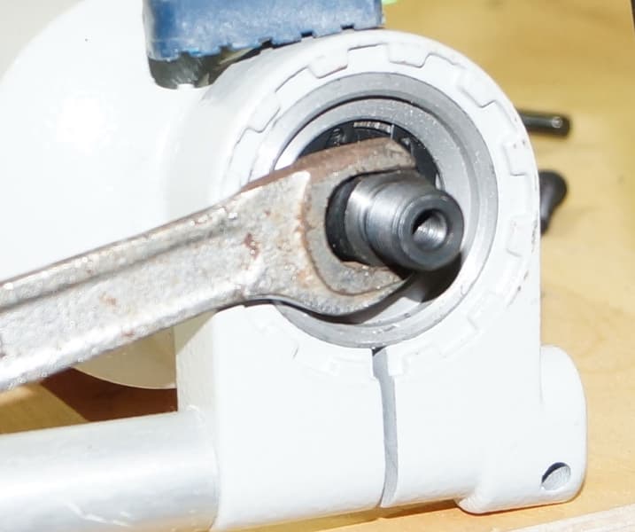 Во время работы патрон может так крепко завинтиться на валу, что отвинтить его окажется невозможно без некоторых ухищрений. Уточним, речь именно о патроне, а не о внутреннем болтике. Чтобы отвинтить патрон, нужно каким-то образом зафиксировать вал. Который, хоть и вращается с большим трудом, но все же вращается. Здесь поможет гаечный ключ, желательно плоский, который сумеет пролезть между патроном и корпусом дрели.
