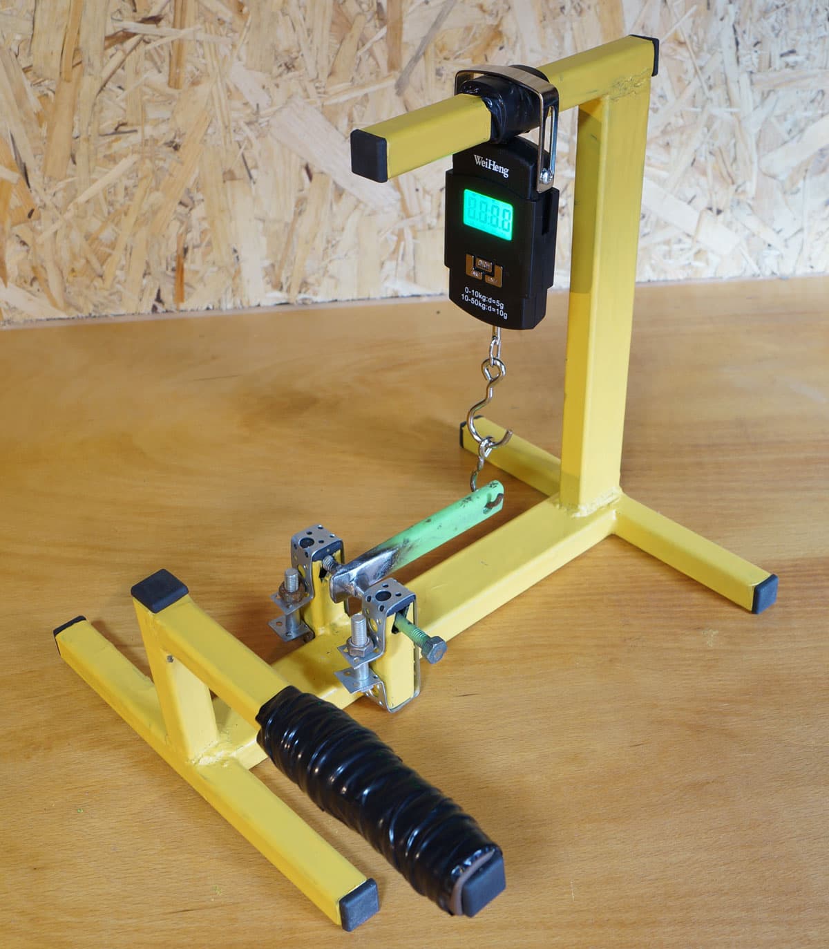 Мы, конечно, раздумывали над тем, чтобы измерить крутящий момент исследуемой дрели с помощью нашего скромного стенда, на котором препарируются обзираемые шуруповерты. Но вовремя поняли, что такая дрель непременно оторвет крючки и поломает безмен. А в худшем случае — попросту скрутит всю эту конструкцию в бараний рог.