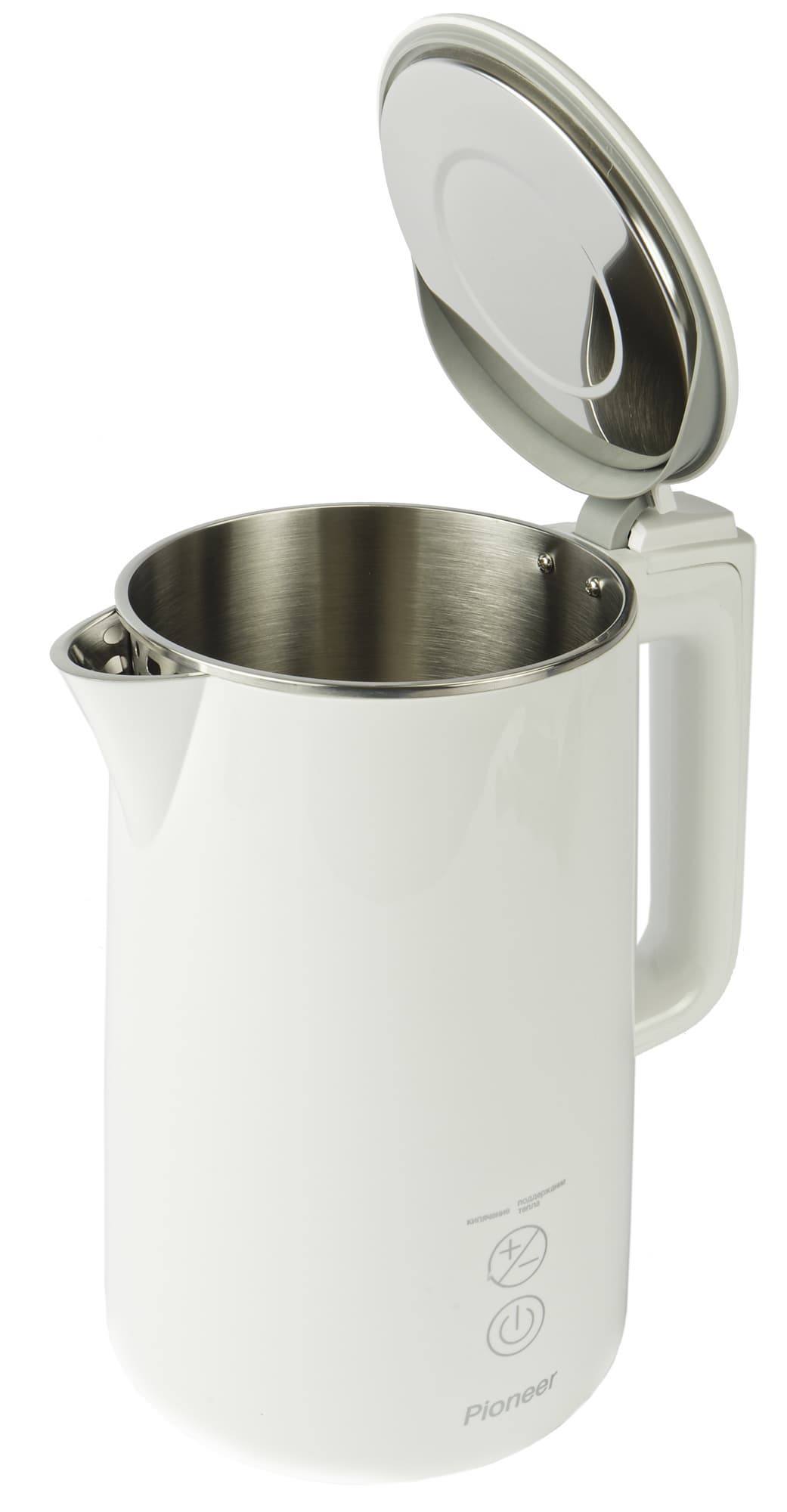 Электрический чайник Pioneer KE577M понравился нам двухслойным корпусом с хорошей теплоизоляцией — безопасным, гигиеничным и нешумным. Он долго сохраняет воду горячей, что позволит сократить расход электроэнергии. Функция подогрева, которая автоматически включается при установке нагрева ниже 100 °C, также способствует экономии: вторично кипятить воду комнатной температуры дороже, чем сохранять ее горячей.