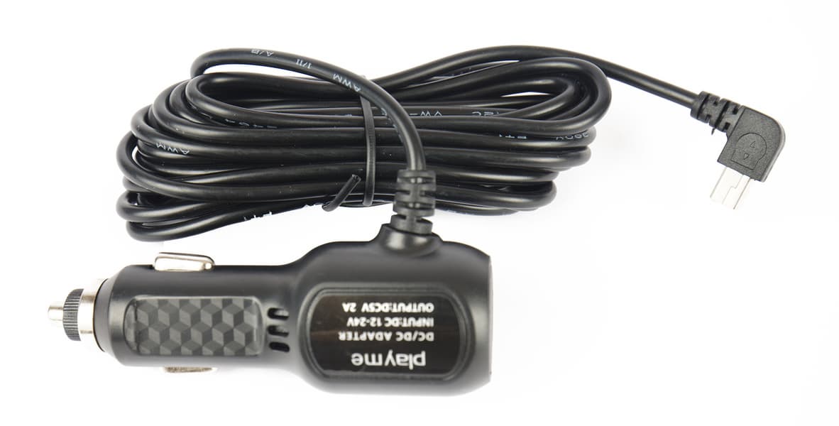 Питается регистратор от обычного прикуривателя, снабженного кабелем длиной 3,2 метра с разъемом Mini-USB.