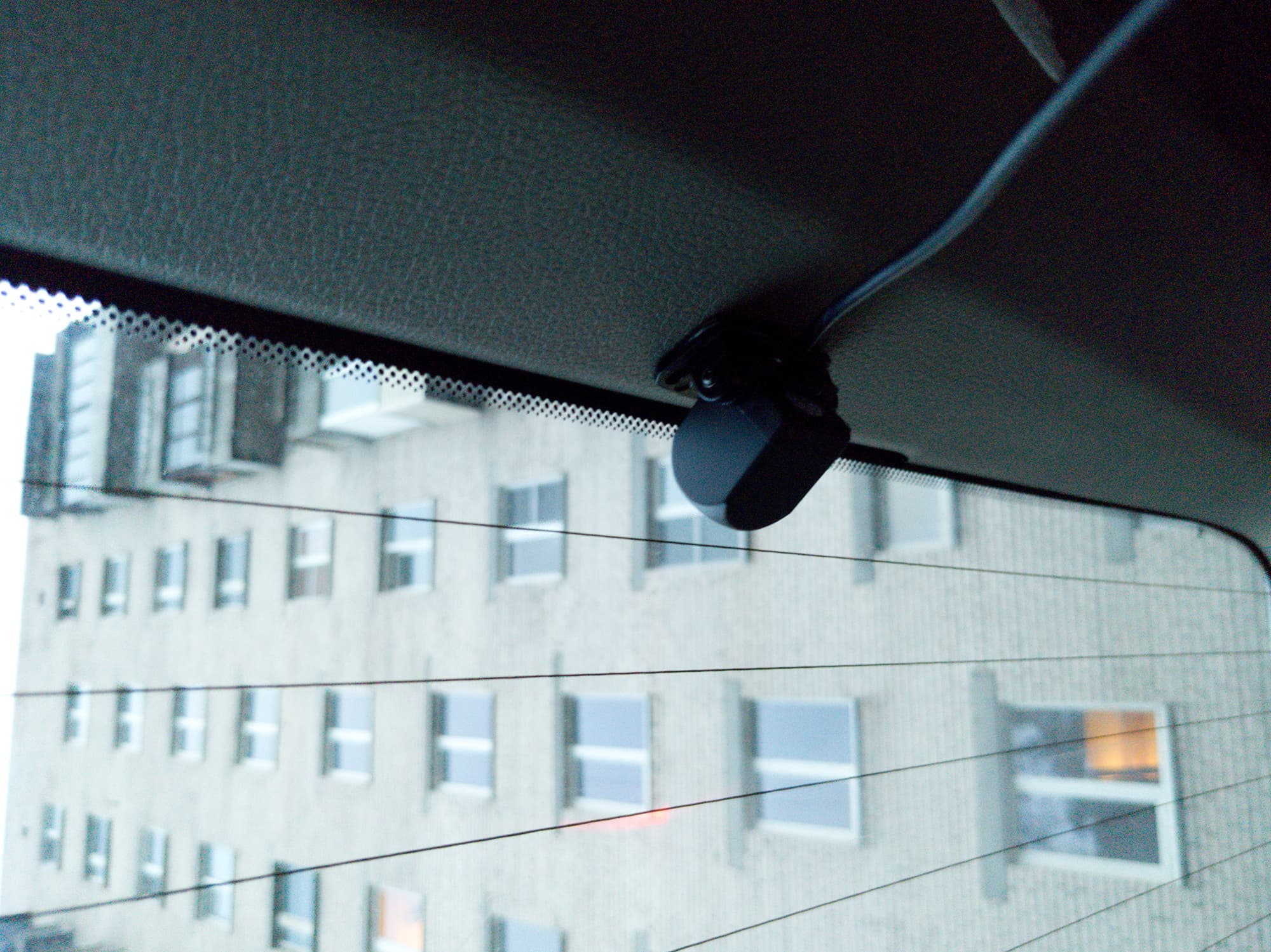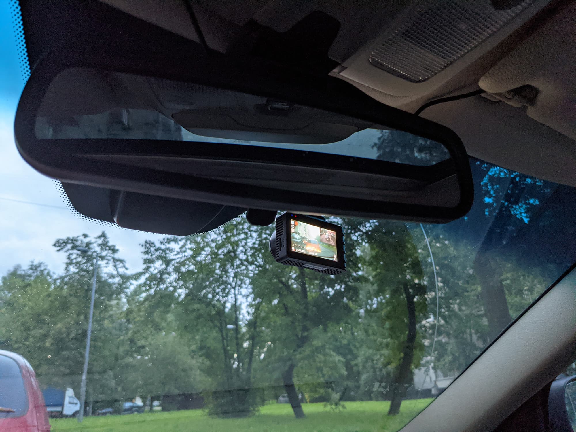 Чем выше закреплен автомобильный видеорегистратор, тем информативнее картинка с него. Мы приняли решение разместить Playme Odder правее зеркала заднего вида и как можно ближе к нему — так, чтобы поле зрение камеры не загораживал блок датчика дождя и не слишком затемняла солнцезащитная полоса.