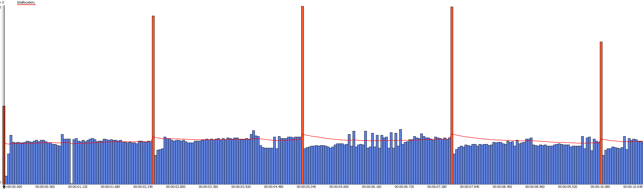 Битрейт в записи распределяется по ключевым (I) и промежуточным (P) кадрам. Двунаправленные (B) кадры в потоке отсутствуют.