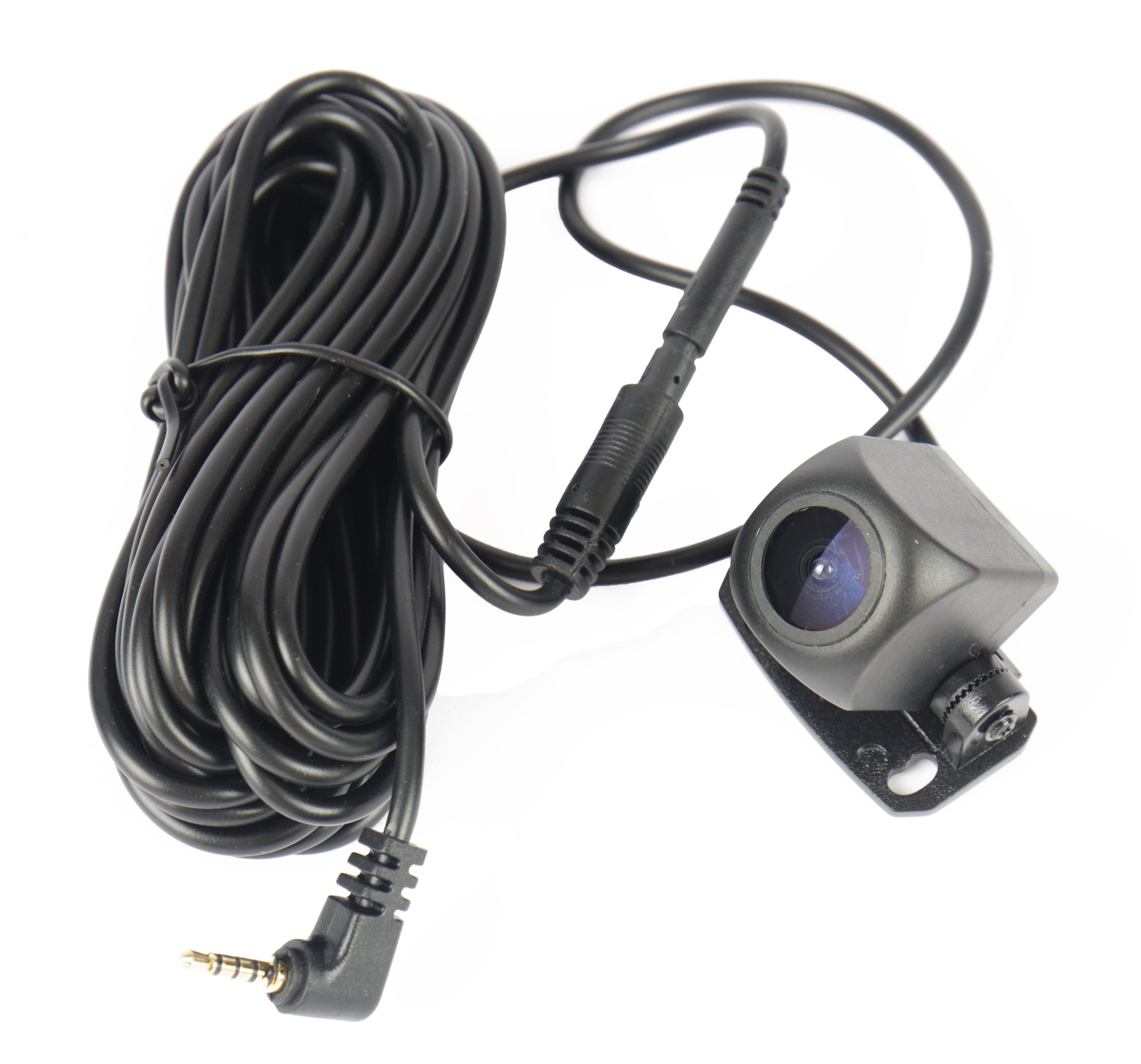 Камера заднего вида подключается к креплению регистратора кабелем длиной 5,5 метра с четырехконтактным миниджеком. В полуметре от камеры на проводе есть разъемное соединение.