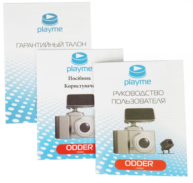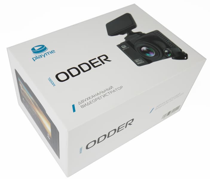 Традиционно для Playme коробка регистратора светлая с логотипом производителя и фотографиями устройства с разных ракурсов.