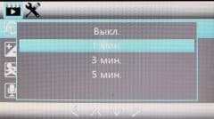 - таймаут отключения экрана (выкл., 30 сек., 1 мин., 2 мин., по умолчанию выключено)