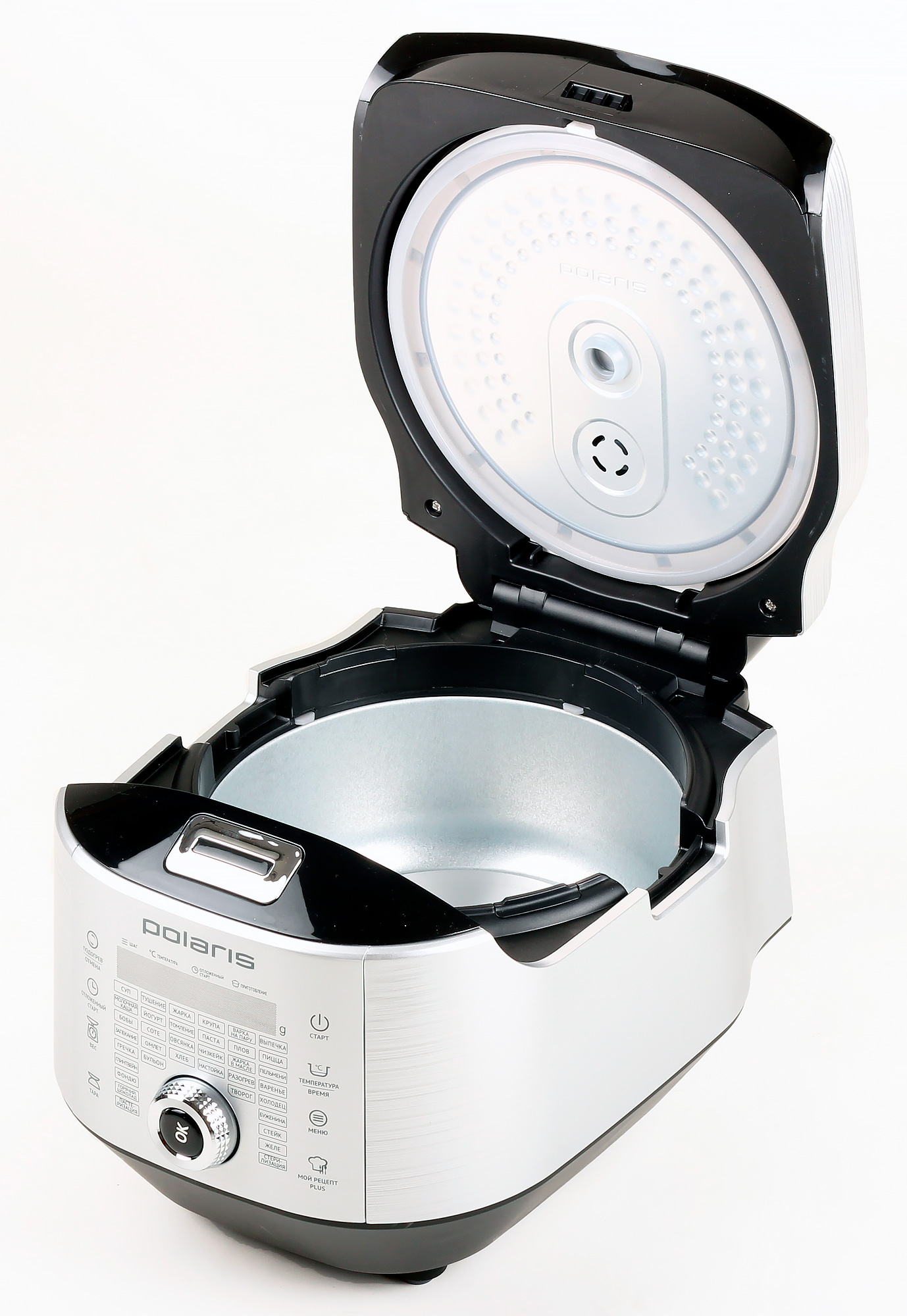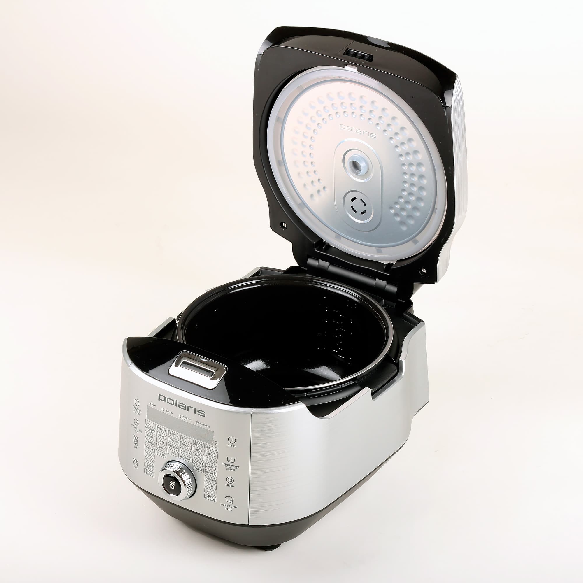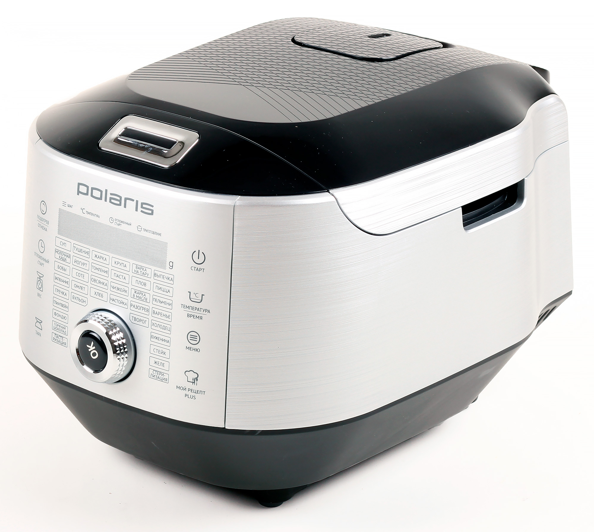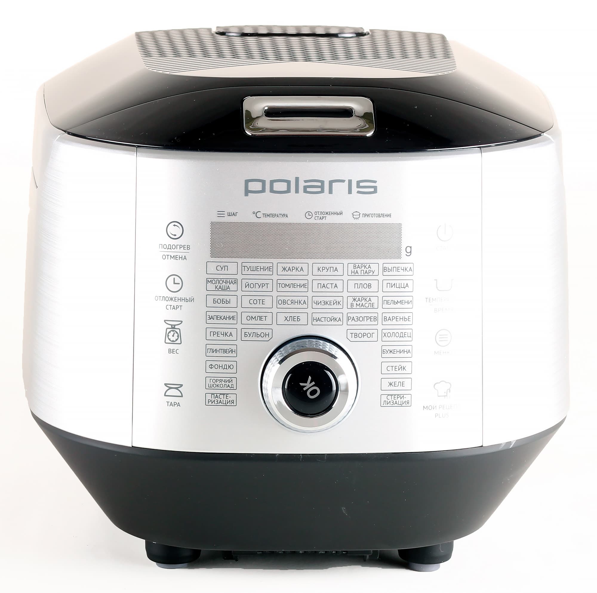 Герой нашего сегодняшнего обзора — мультиварка Polaris, оснащенная рядом дополнительных функций, в числе которых отметим возможность создания последовательности из различных пользовательских режимов и встроенные весы, позволяющие измерять вес продукта внутри чаши.