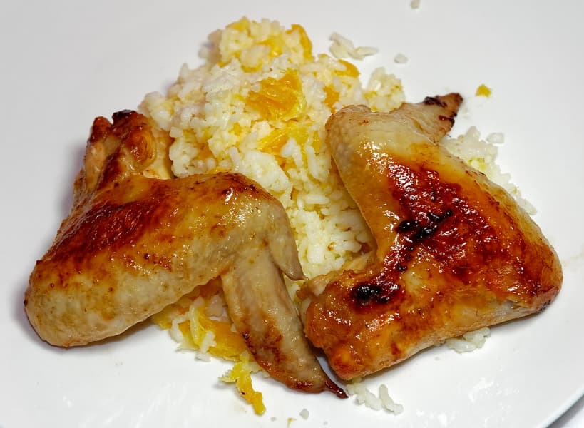 Куриные крылышки с рисом и апельсиновым маслом