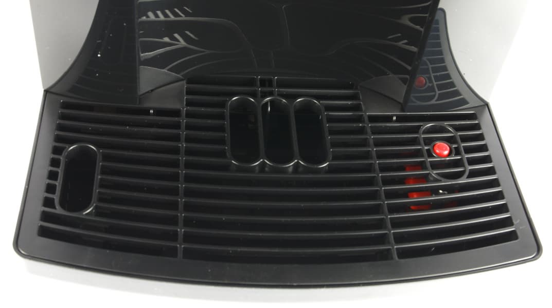 Поддон пластиковый, относительно небольшого объема. Предусмотрен датчик переполнения — пластиковый поплавок. С учетом того, что кофемашина будет регулярно проливать воду для собственной очистки, опорожнять контейнер придется ежедневно или раз в пару дней.