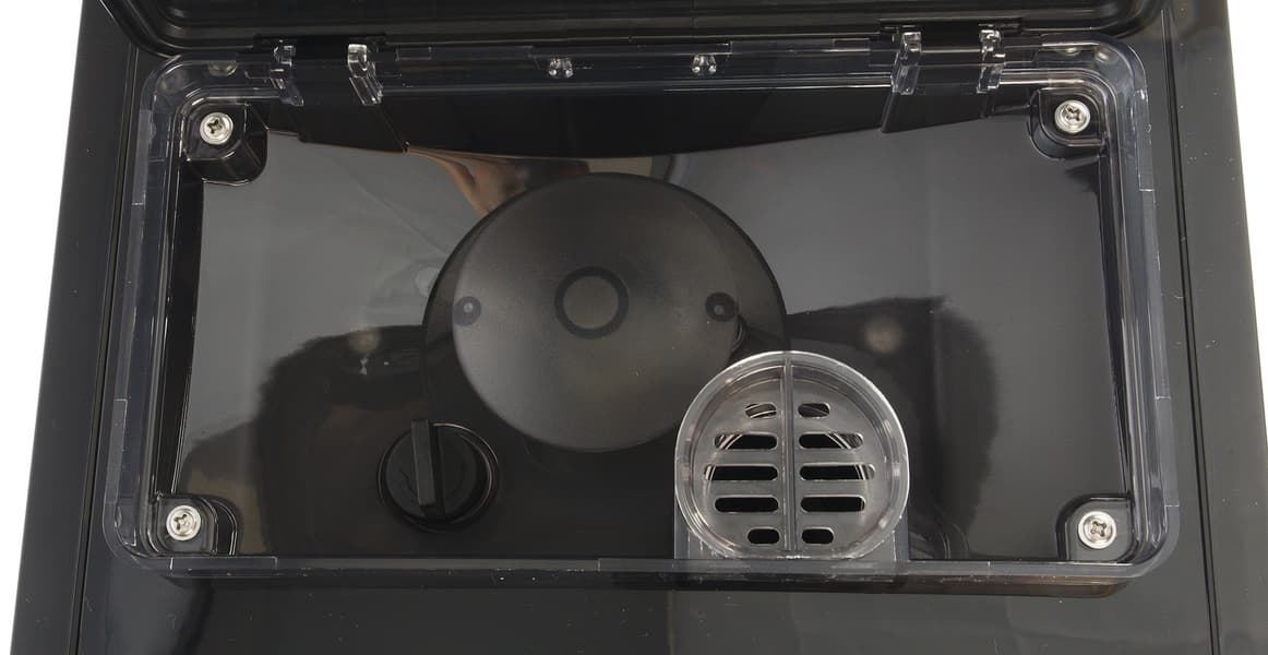 Кофемолку внимательно рассмотреть не получится, однако мы знаем, что во всех подобных устройствах используется плюс-минус одна и та же модель — кофемолка со стальными коническими жерновами. Вполне адекватное и достаточное для домашних пользователей решение.