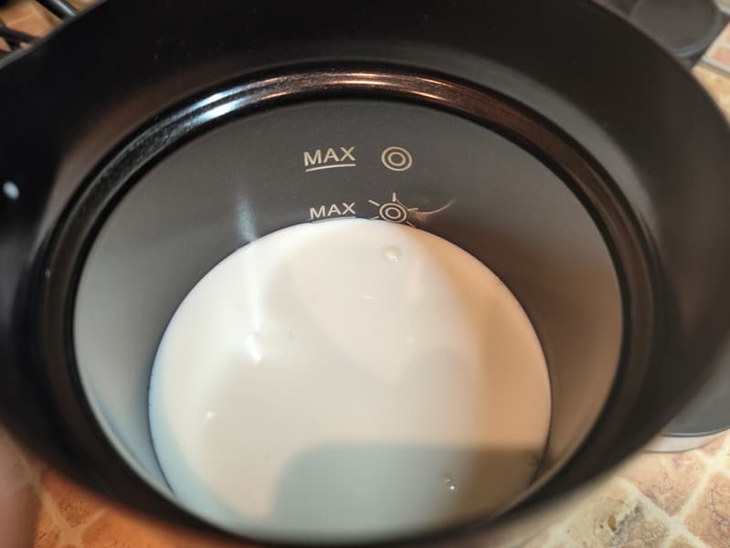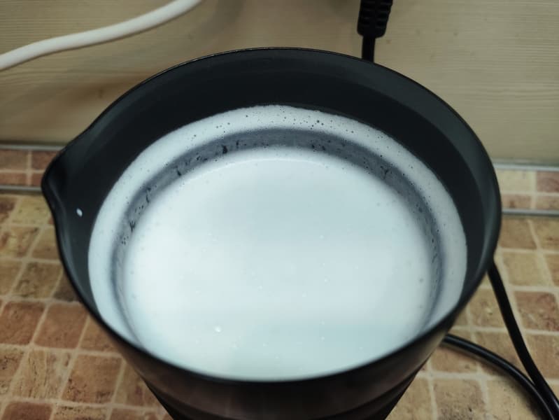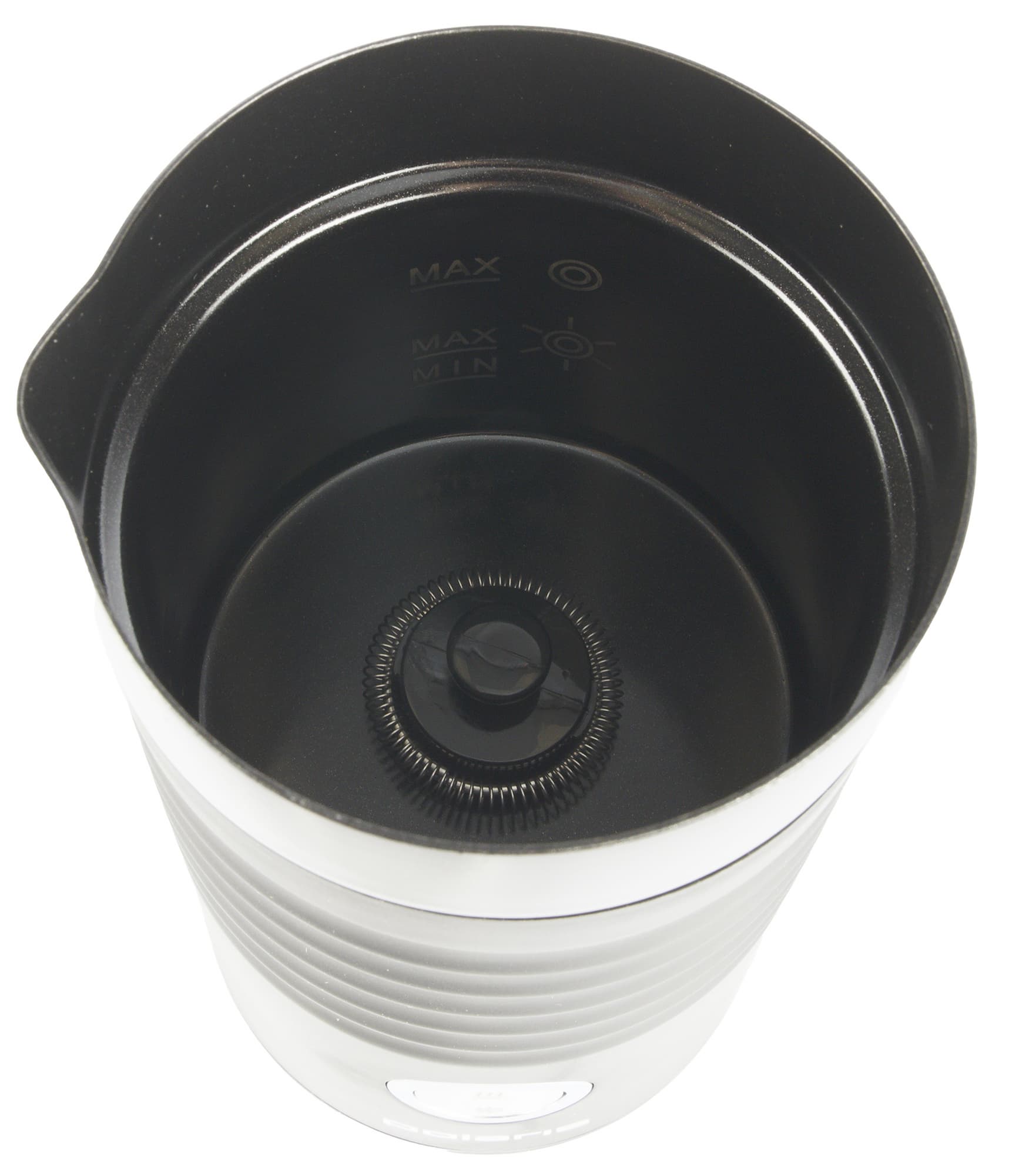 На внутренней стороне нанесены отметки минимального и максимального допустимого уровня молока для подогрева и вспенивания соответственно. Для вспенивания рекомендуется брать 110 мл молока, для подогрева — до 200 мл.