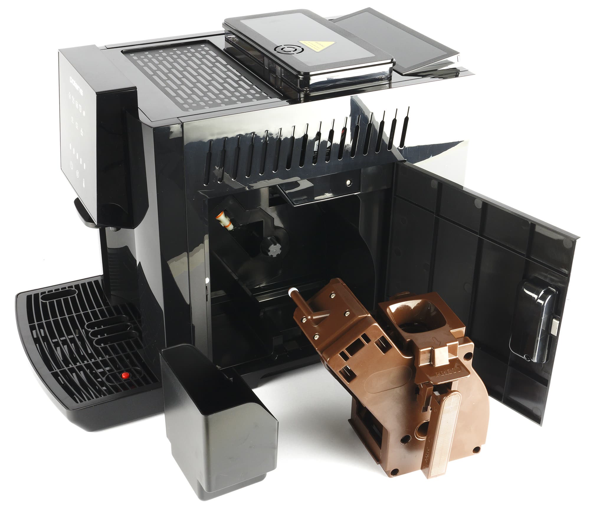 По форме решетки мы догадываемся, что слева у родственной модели когда-то был капучинатор. Очевидно, перед нами единый корпус, который используется сразу у нескольких моделей — как с капучинатором, так и без него.
