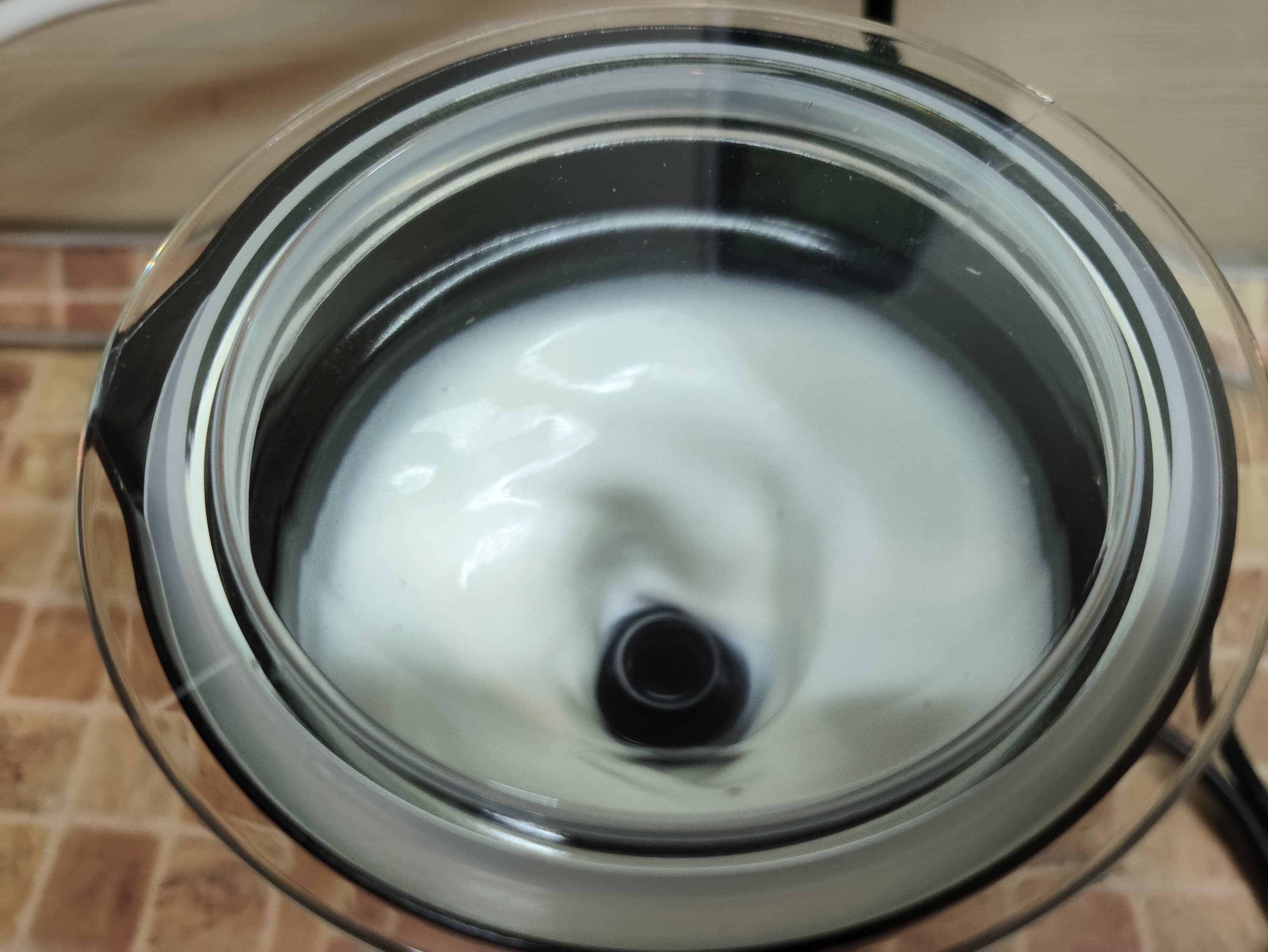 Внутри — антипригарное покрытие, а на дне — небольшой моторчик с насадкой-взбивалкой.