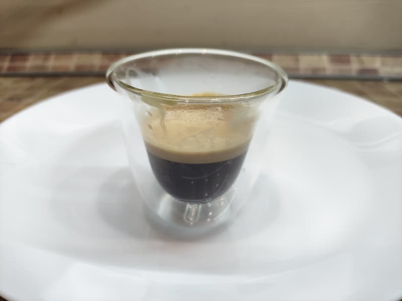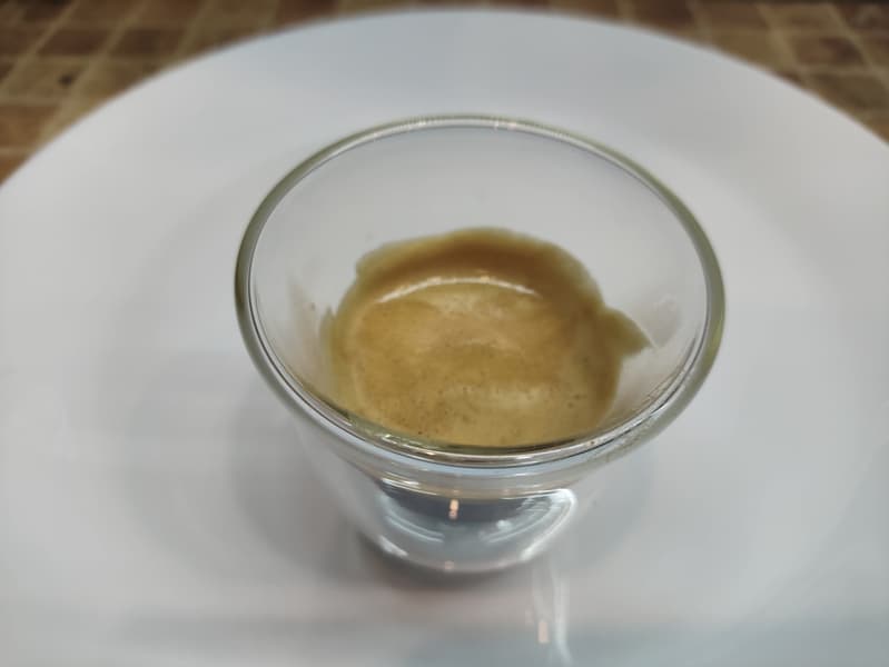 Температура в непрогретой чашке — 59 градусов для первого эспрессо и 65 для второго. Чуть меньше, чем хотелось бы (и это на максимальной температуре!). Вес напитка на стандартных настройках — 36 г.