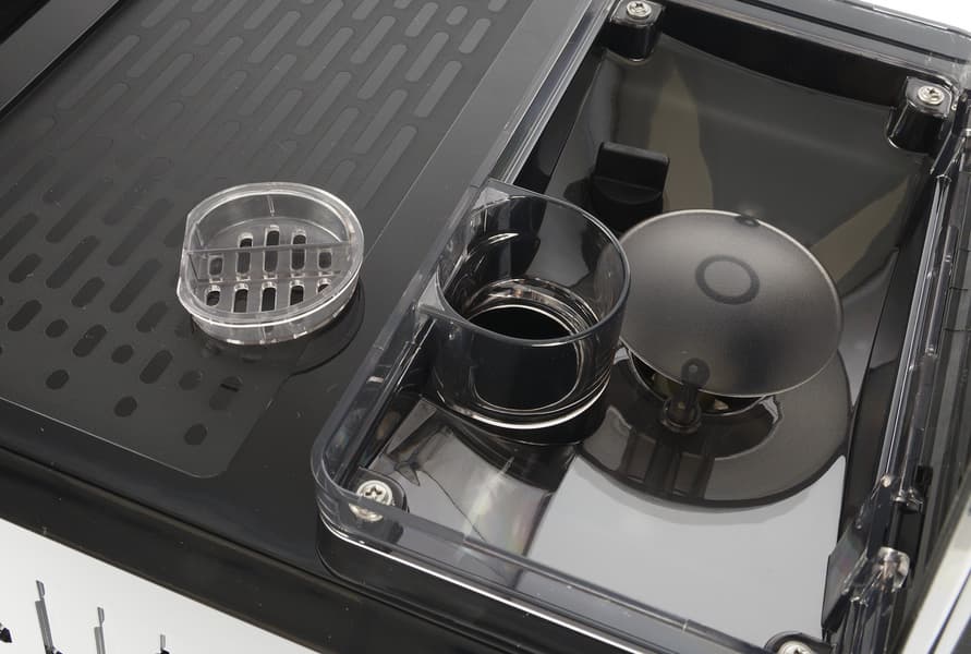 Под заварочным блоком предусмотрен небольшой пластиковый поддон, в который будут попадать остатки кофе, которые просыпались мимо (это совершенно нормально).