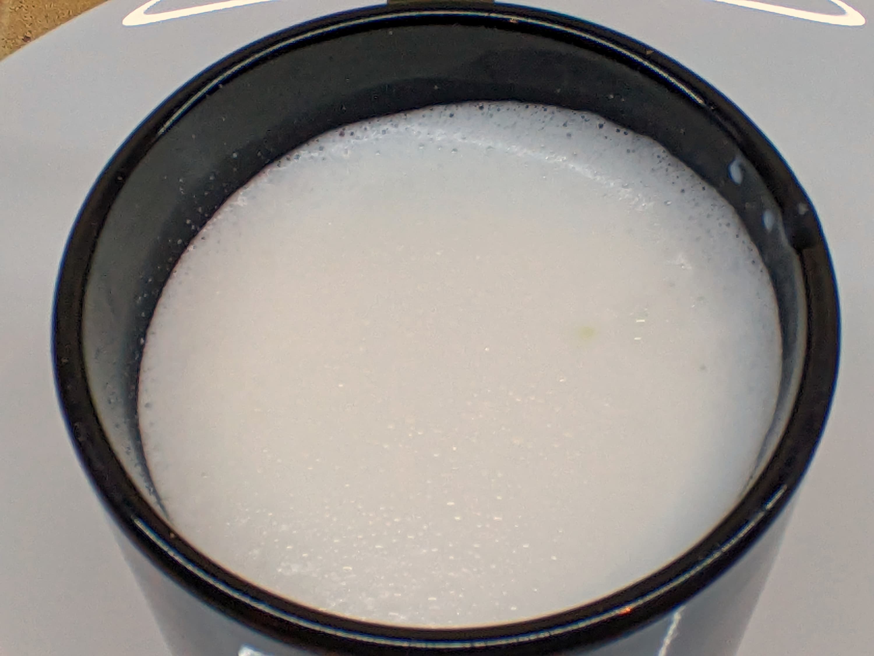 А вот та же пена, перелитая в другую емкость. На фото мы уже добавили эспрессо и получили капучино.