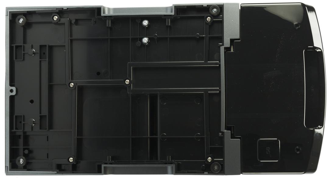 Во-первых, скажем про корпус. Серый матовый пластик на боковых гранях выглядит стильно и строго. И главное — на нем не будут видны небольшие загрязнения и отпечатки пальцев. Дополнительные элементы сделаны из черного пластика, который также хорошо смотрится и отлично дополняет общий дизайн прибора.