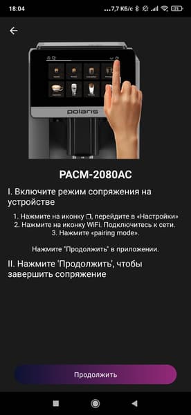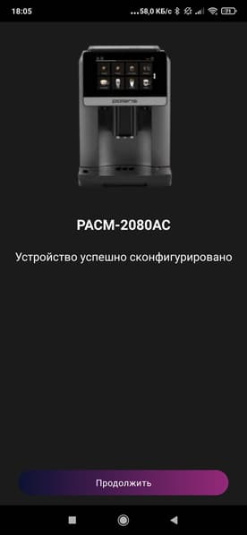 В процессе подключения приложение самостоятельно обнаружит кофеварку и предложит сообщить ей данные Wi-Fi-сети (название сети и пароль).