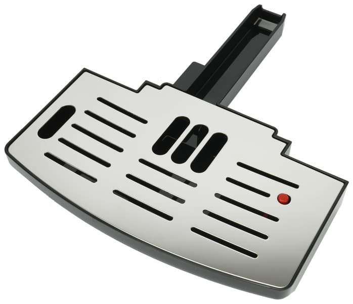 Поддон пластиковый, относительно небольшого объема. Предусмотрен датчик переполнения — пластиковый поплавок. С учетом того, что кофемашина будет регулярно проливать воду для собственной очистки, если вовремя не подставить чашку, то опорожнять контейнер придется ежедневно. Максимум — раз в пару дней.