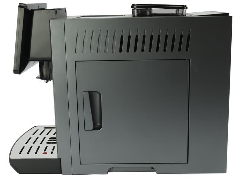 А вот справа находится лючок, под которым прячется заварочный блок. В в верхней части корпуса расположены настоящие вентиляционные отверстия. С левой стороны машины вентиляции, таким образом, не предусмотрено вовсе.