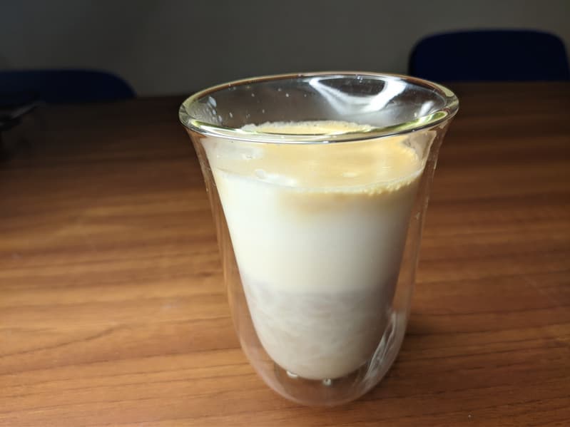 А вот латте готовится в обратной последовательности — сначала молочная пена, а потом порция эспрессо.