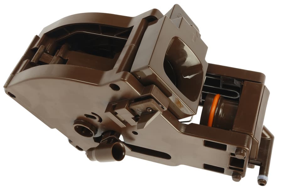 Внешне блок похож на аналогичные модули, которыми оснащены все автоматические кофемашины, но даже невооруженным глазом видно, что отличия между ними существенные — перед нами не прямой клон популярного бренда, а какая-то другая разработка (которую мы, надо сказать, уже встречали в других машинах Polaris).