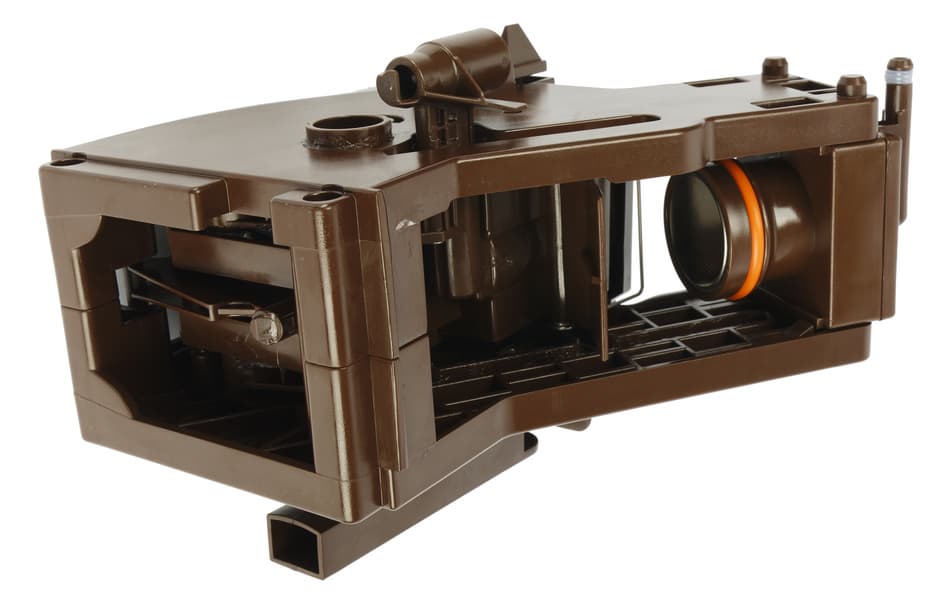 Рядом с заварочным блоком устанавливается пластиковый отсек для отработанных кофейных зерен, который вмещает около 8-10 таблеток (отработанных порций). На нем присутствует датчик-магнит, позволяющий кофемашине понять, правильно ли установлен отсек. Датчика переполнения при этом не предусмотрено.