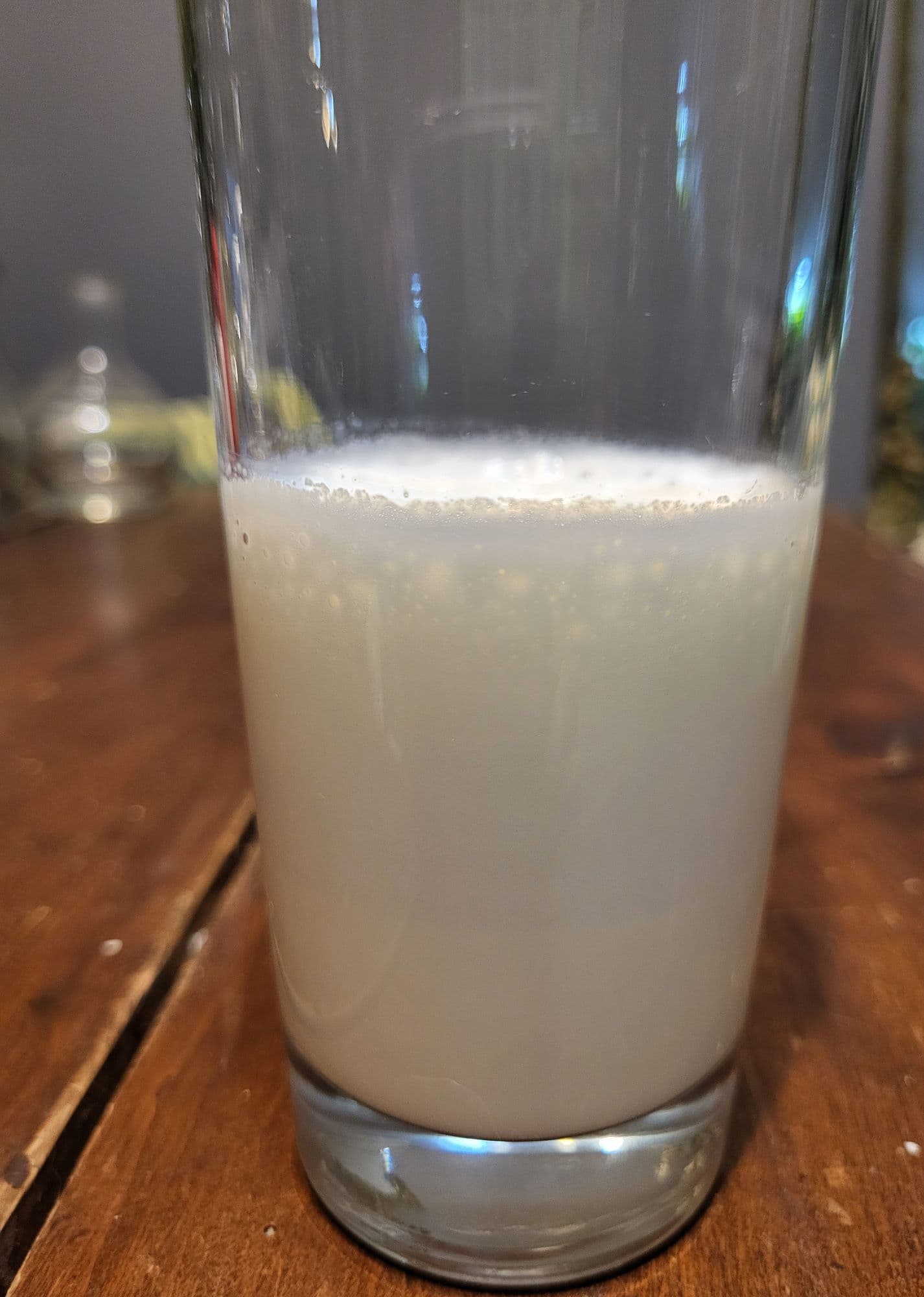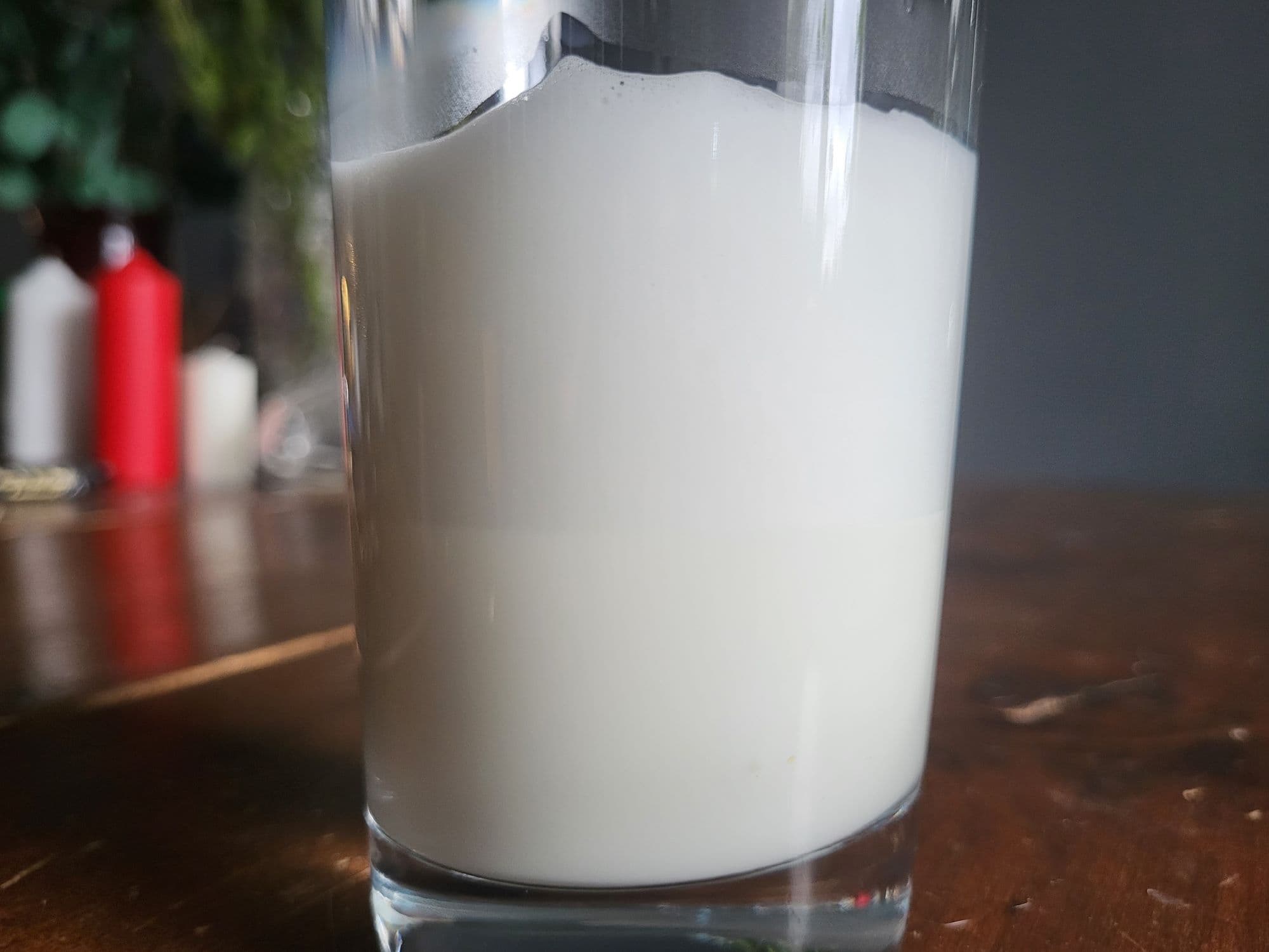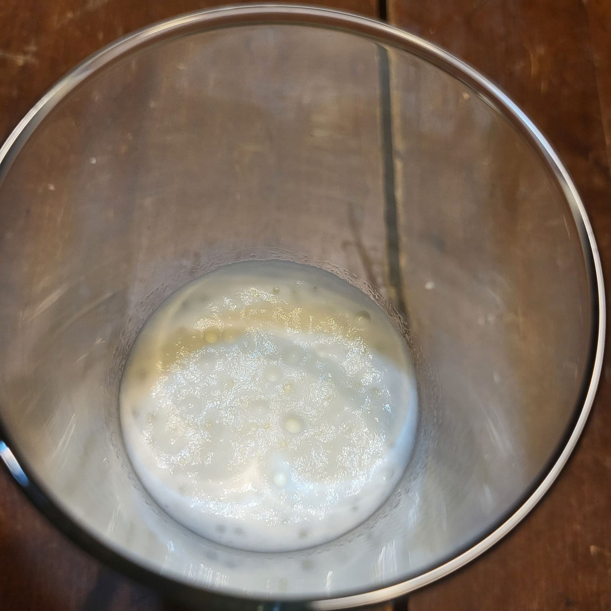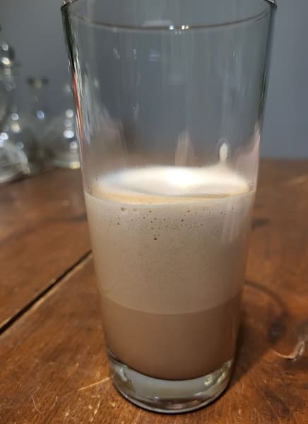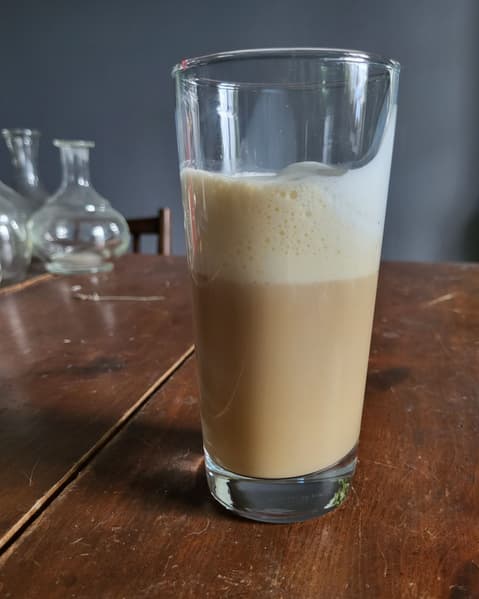И вылили в стакан, чтобы подробнее рассмотреть соотношение молока и пены: