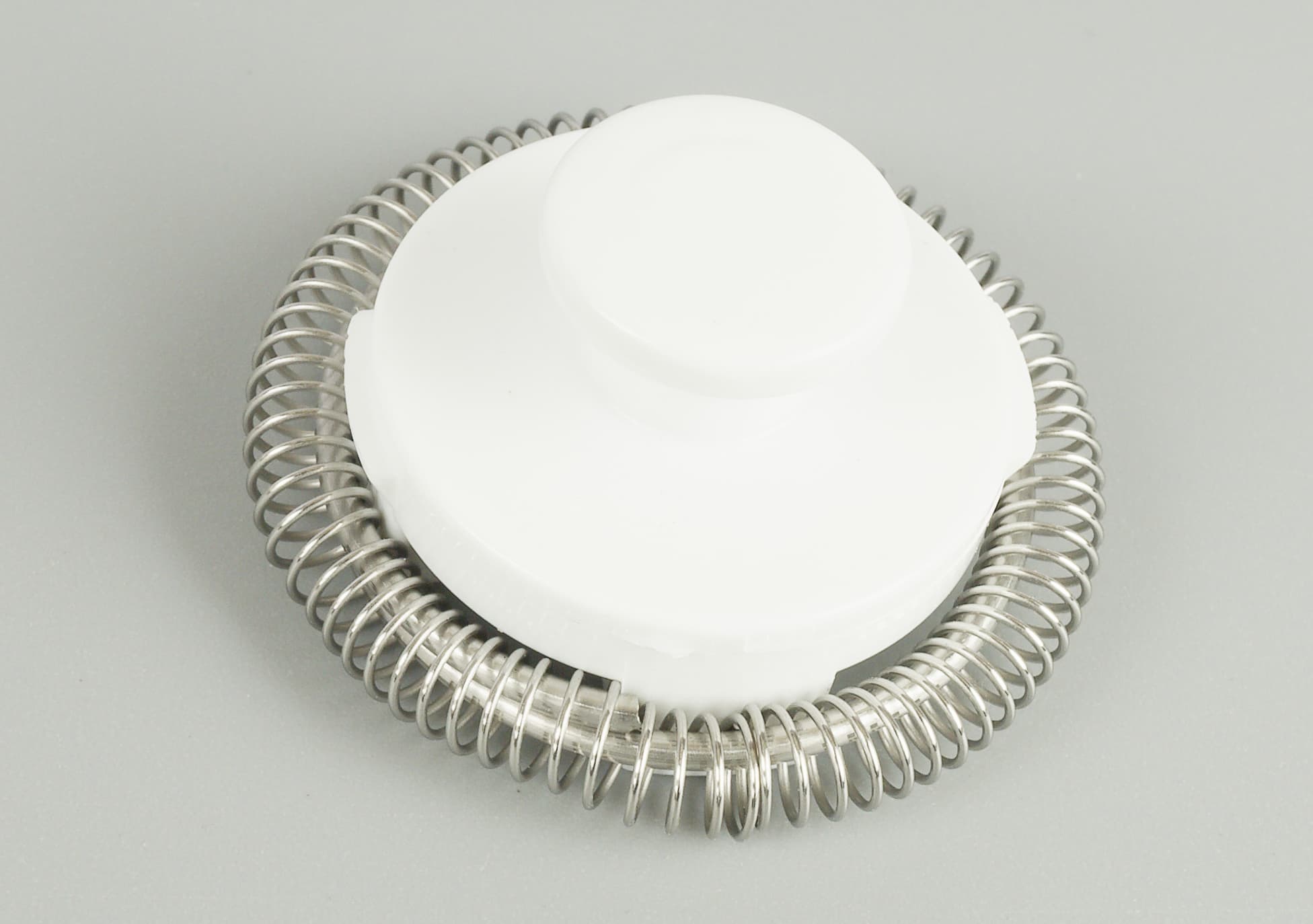 Насадка для вспенивания представляет собой деталь, по окружности обведенную металлической спиралью, которая, собственно, и обеспечивает вспенивание молока.