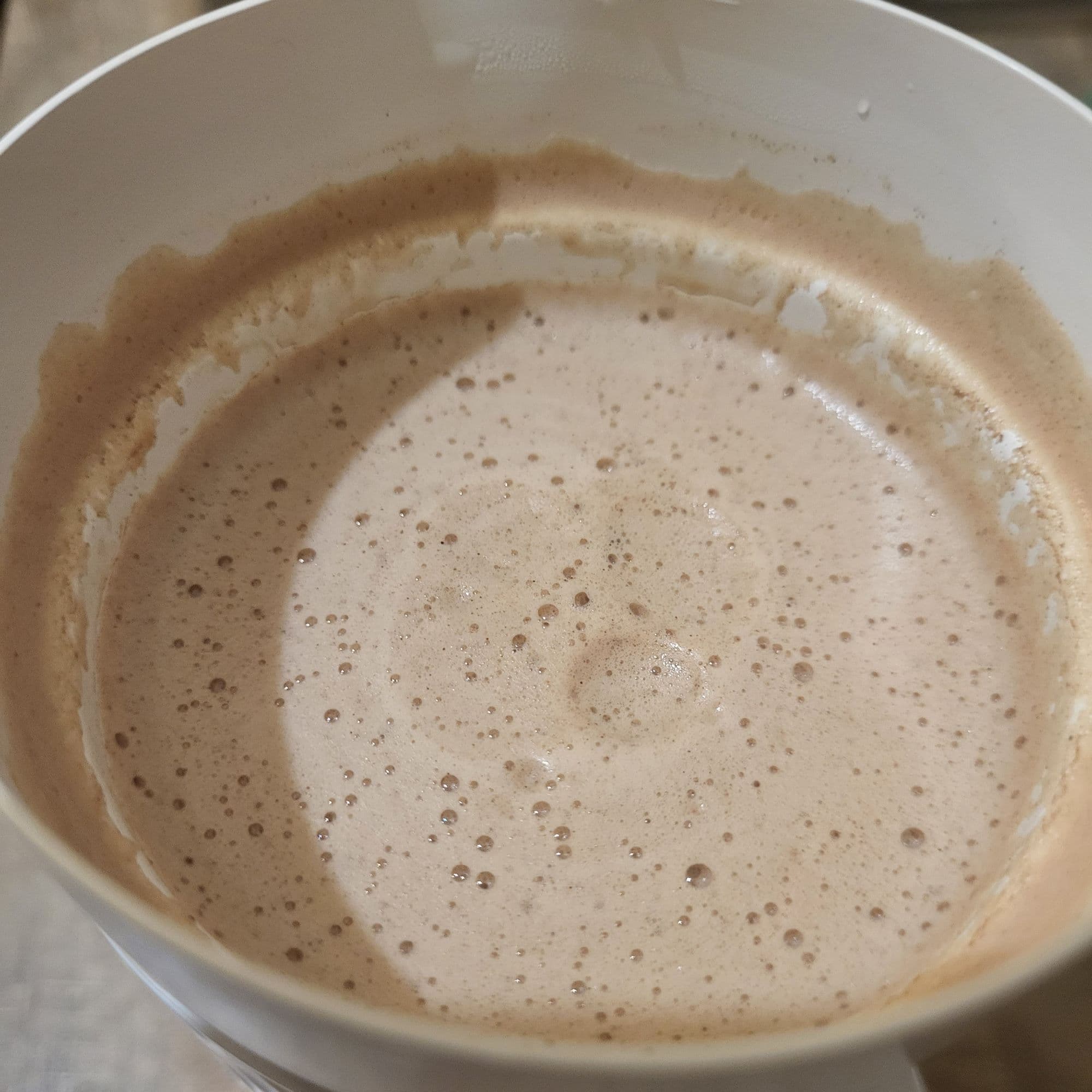 Какао прекрасно перемешалось с молоком, пена ничуть его не испортила, но готовый напиток получился прохладным: 52 °C. На пене, подцвеченной какао, лучше видно качество пузырьков.