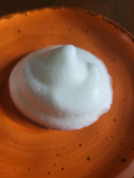 Пена чуть крупнее и воздушнее, чем пена для капучино.
