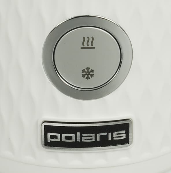 Ручка пластиковая, с металлическими декоративными вставками. На передней панели мы видим кнопку включения. Под кнопкой расположен логотип Polaris.