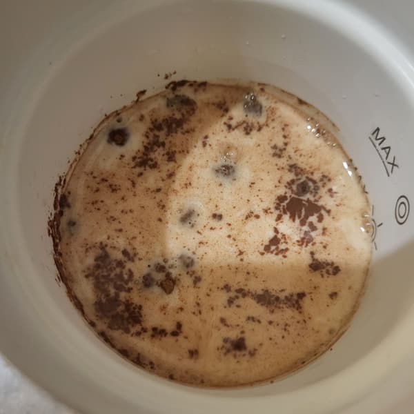 Также в этом режиме мы решили попробовать приготовить какао. Влили в кувшин холодное молоко, бросили туда ложку какао и включили программу. Сахар добавлять не стали, поскольку опасались, не повредит ли он вспениватель.