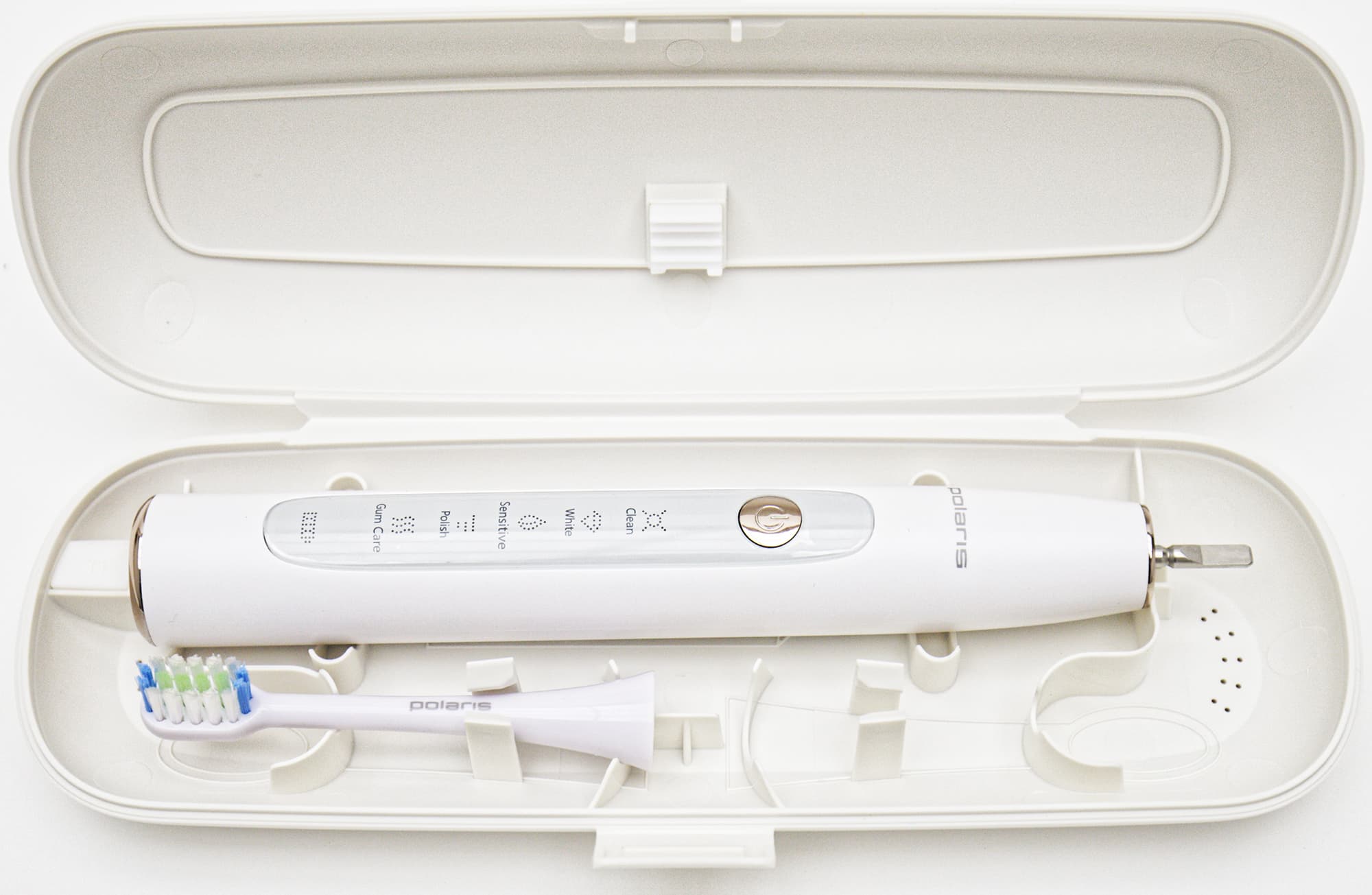 У нас на тестировании один из таких приборов — модель PETB 0503 TC компании Polaris. Почистим ею зубы и расскажем о впечатлениях.