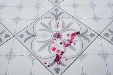 В следующий раз, в качестве эксперимента нанесли на плитку мед и варенье. Дали загрязнению высохнуть и на следующий день попробовали отмыть.