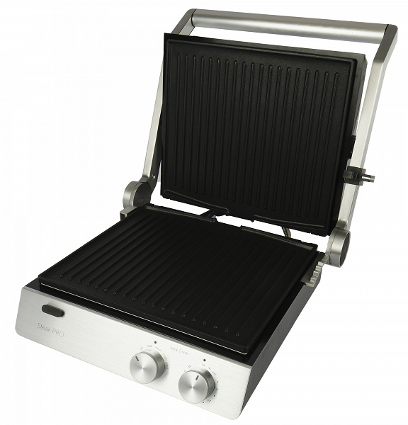 В общем, перед нами предстала вполне стандартная модель, «доведенная до ума». В ней устранен ряд неудобных моментов (типа лотка для жира, который нужно было извлекать с тыльной стороны прибора), гриль укомплектован качественными нагревательными панелями и сохранил довольно простое управление. На наш взгляд, впрочем, управление слишком уж простое. Как минимум мы хотели бы увидеть у регулятора нагрева шкалу с указанием температур, а не безликие режимы Med или High, о смысле которых без инструкции догадаться не так-то просто.