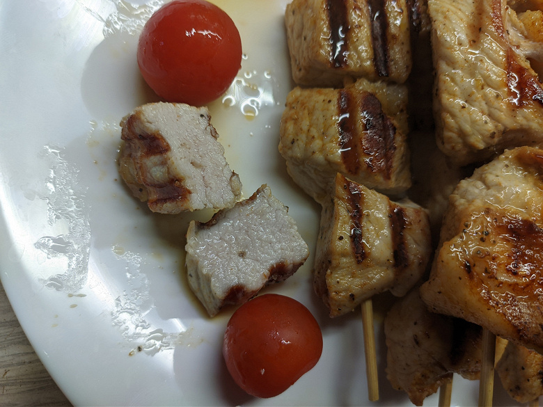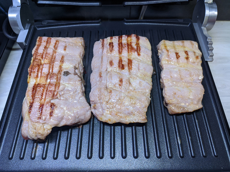 Как мы видим, греет гриль по-настоящему сильно и мощно: мы ожидали увидеть менее прожаренное мясо, хотя и в такой прожарке оно оказалось более чем вкусным.