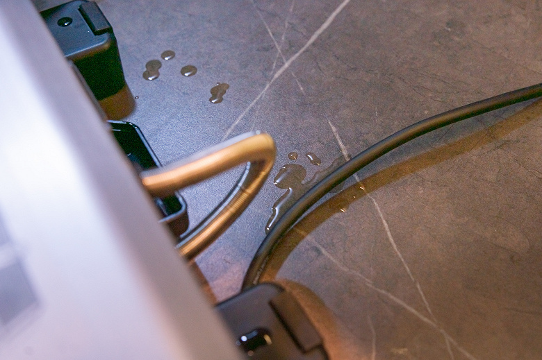 Также при жарке влажных сочных продуктов конденсат скапливался и на передней стороне верхней части гриля.
