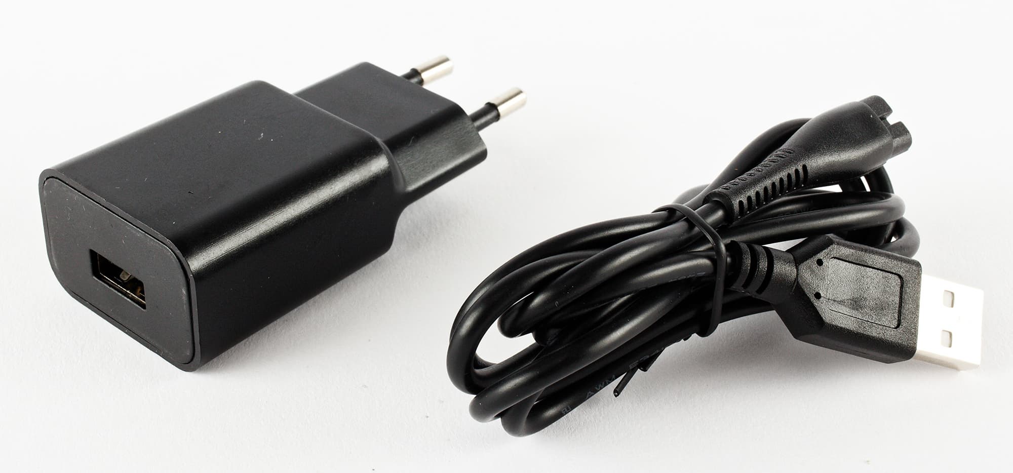 А вот зарядное устройство нас немного удивило: несмотря на то, что в комплекте с устройством поставляется USB-зарядка (5 В, 1 А), у самого прибора разъем для зарядки фирменный (не USB). Таким образом подзарядить телефон от комплектной зарядки получится, а вот воспользоваться телефонным USB-проводом для зарядки триммера — нет.
