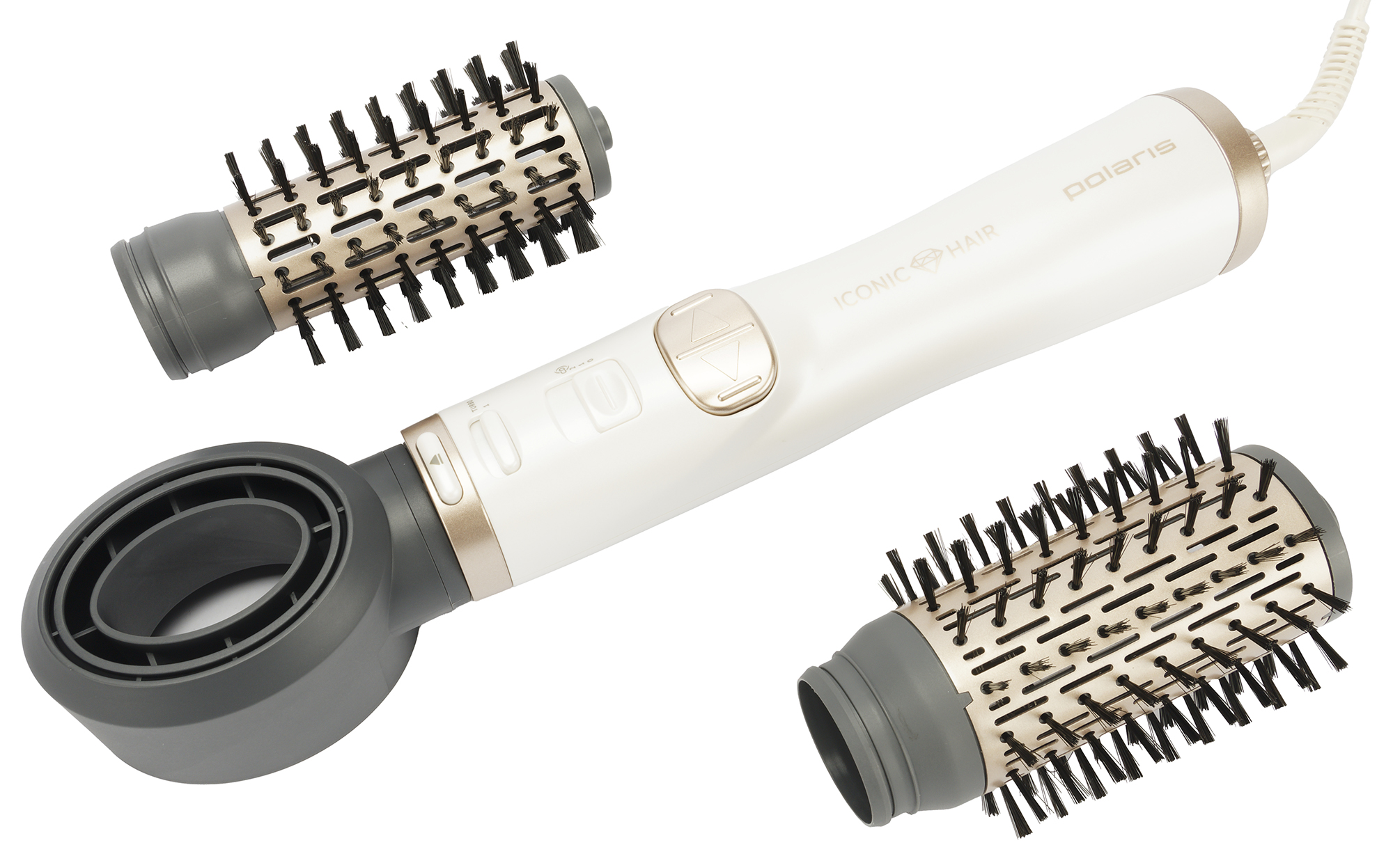 Polaris PHSB 1122Ri — это фен и одновременно расческа с автовращением для укладки волос. Устройство комплектуется двумя видами насадок-щеток и концентратором, а также оснащено генератором ионов для снятия с волос статического электричества и придания локонам мягкости и гладкости.