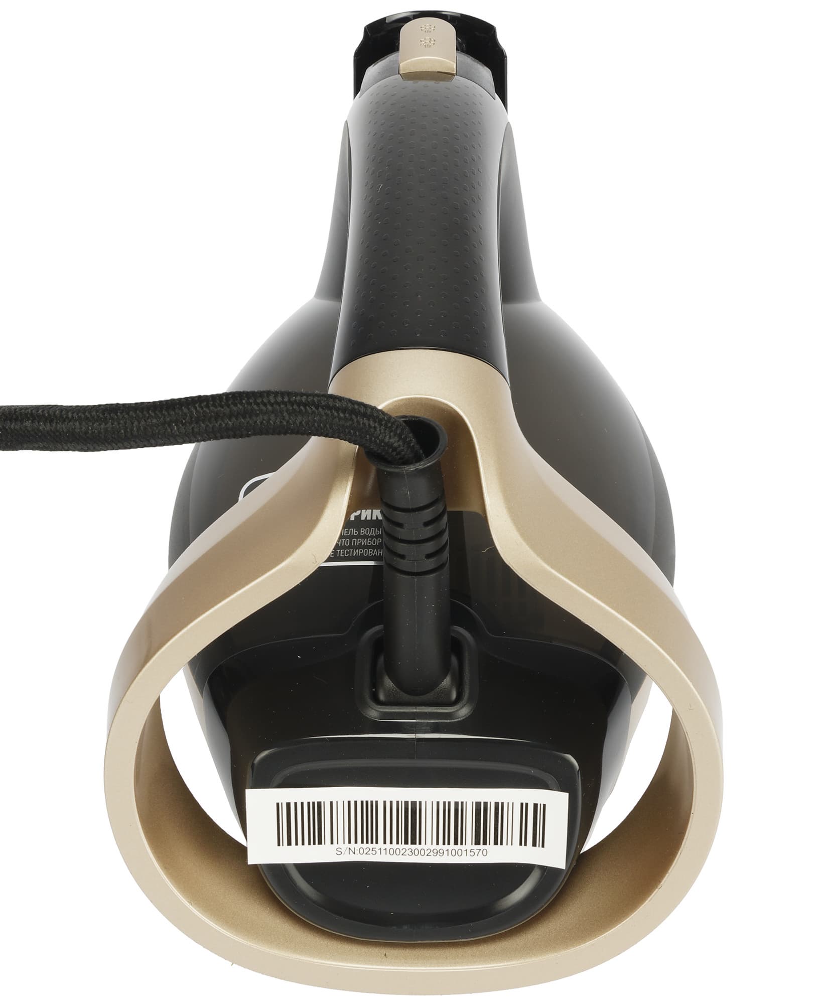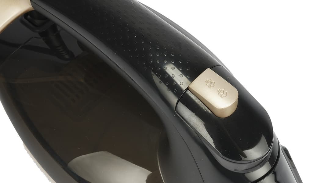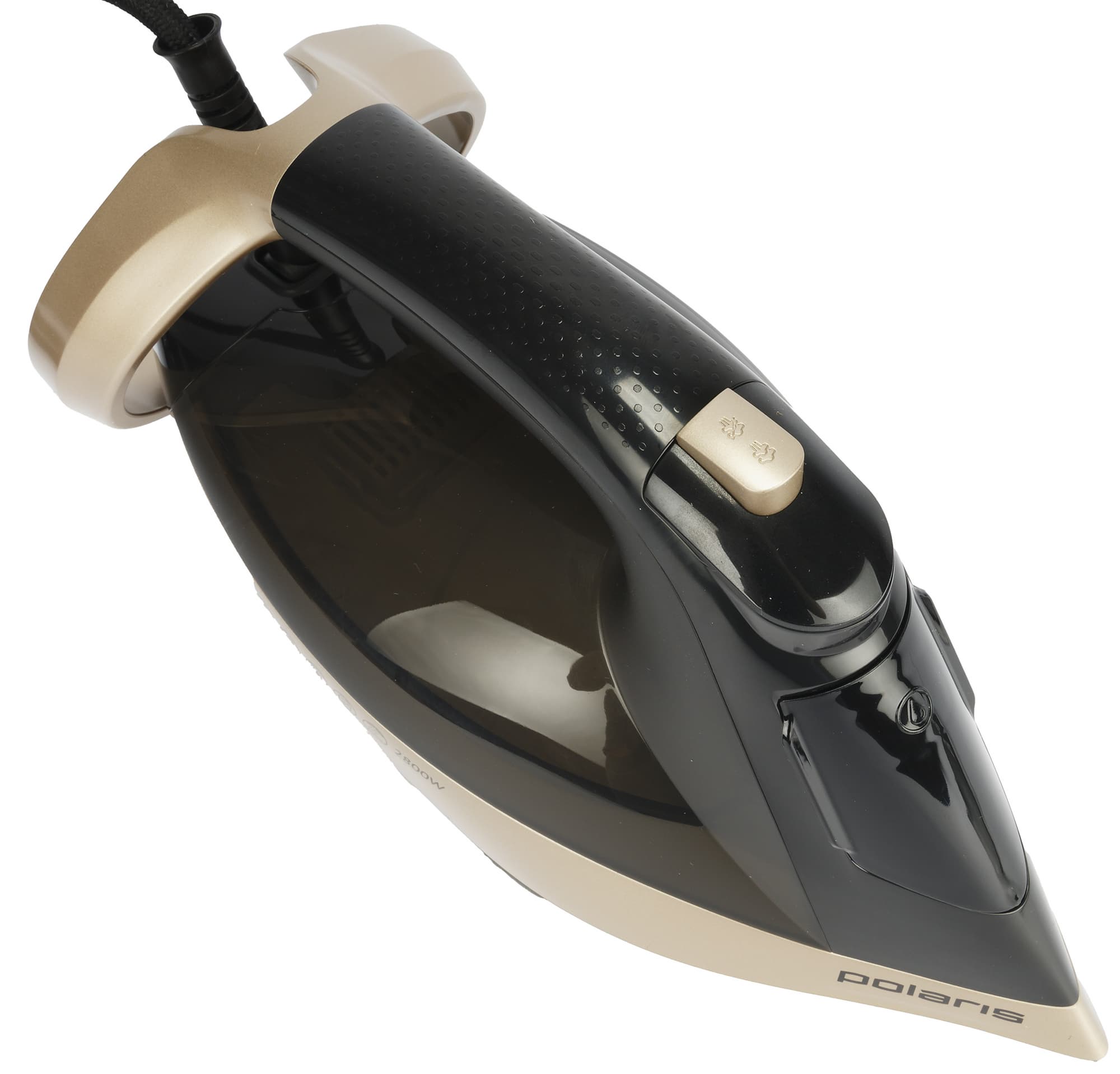 Но вся прочая конституция прибора выглядит вполне привычно. У утюга аккуратные обтекаемые формы и он выполнен в сдержанной цветовой гамме черных и бежево-золотых оттенков.