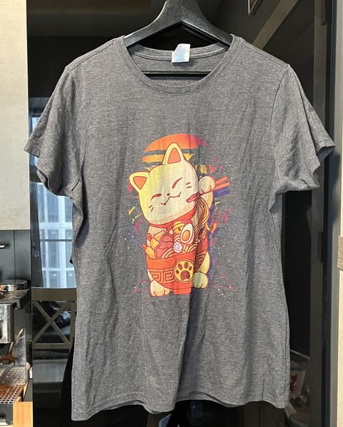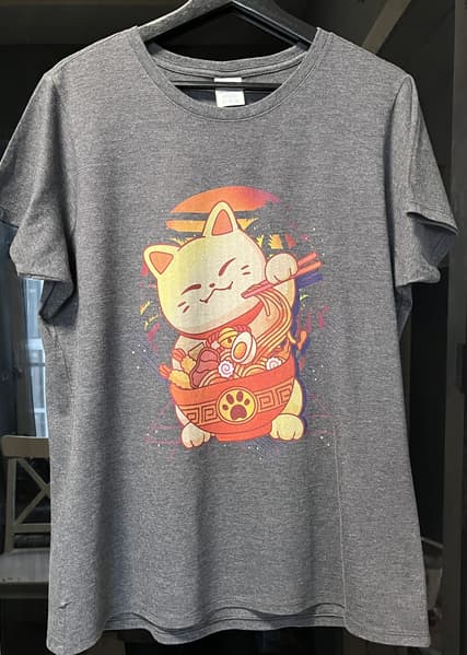 Начали мы с нашего классического теста с хлопчатобумажной футболкой, имеющей принт.