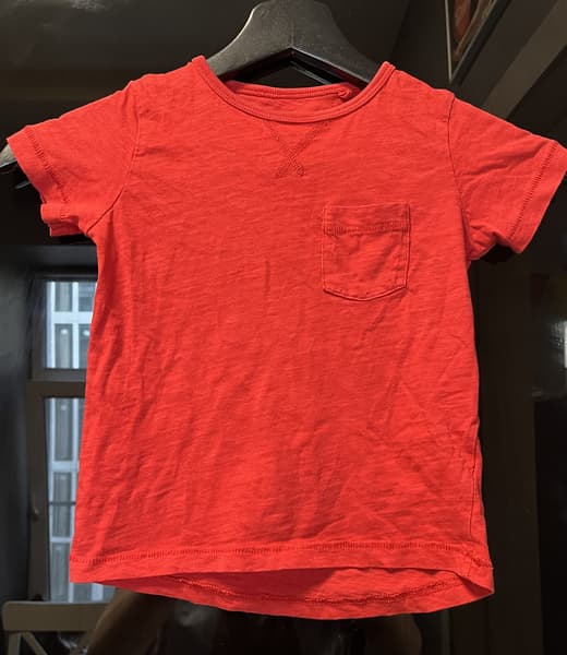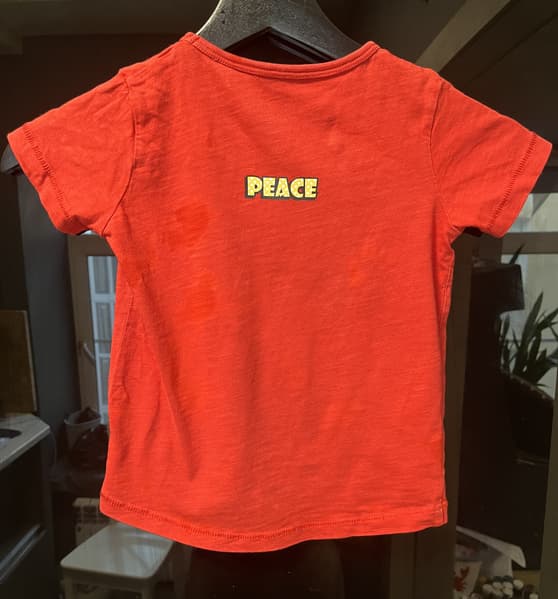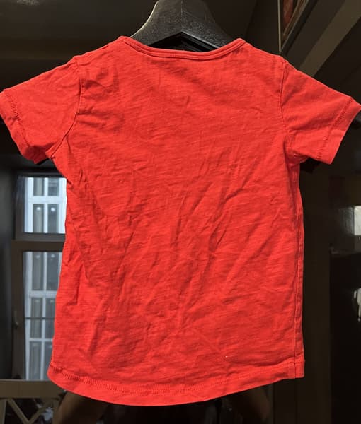 Мы взяли детскую однотонную хлопковую футболку и подобрали к ней две термонаклейки.