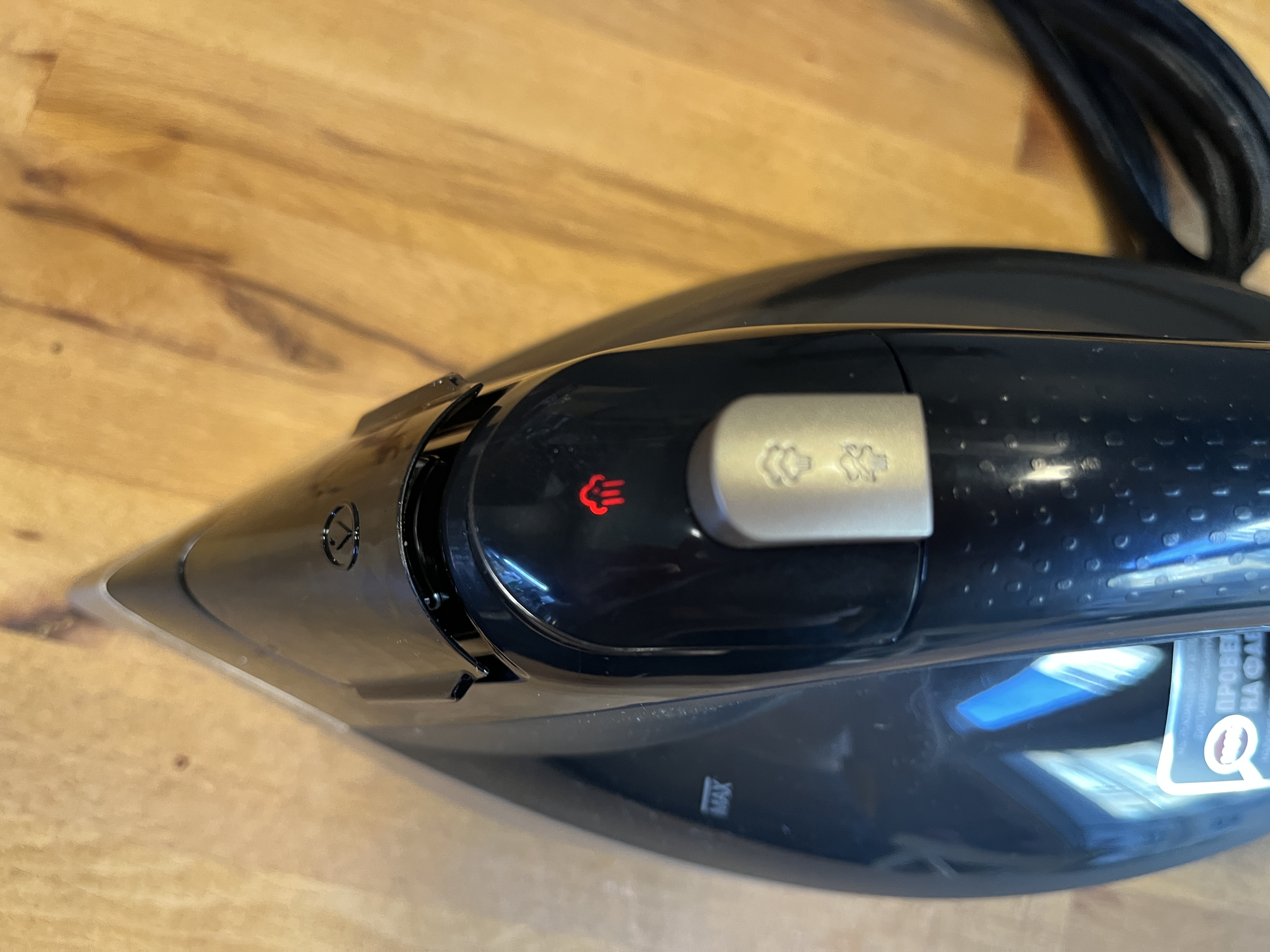 Что нас очень порадовало, так это действительно совсем незначительная разница температуры в разных частях подошвы — перепад составлял не более 5 градусов. Да и всё, что касается подошвы, оказалось крайне продуманным: зауженный носик способен подобраться даже в труднодоступное для разглаживания место и обработать мелкие и конструктивно сложные элементы одежды, а толстое и гладкое покрытие подошвы позволяет без усилий и быстро разгладить даже глубокие заломы. Отметим также удобный желобок для пуговиц, который легко и непринужденно захватывает все пуговицы на своем пути и позволяет прогладить ткань под ними одним-двумя движениями.