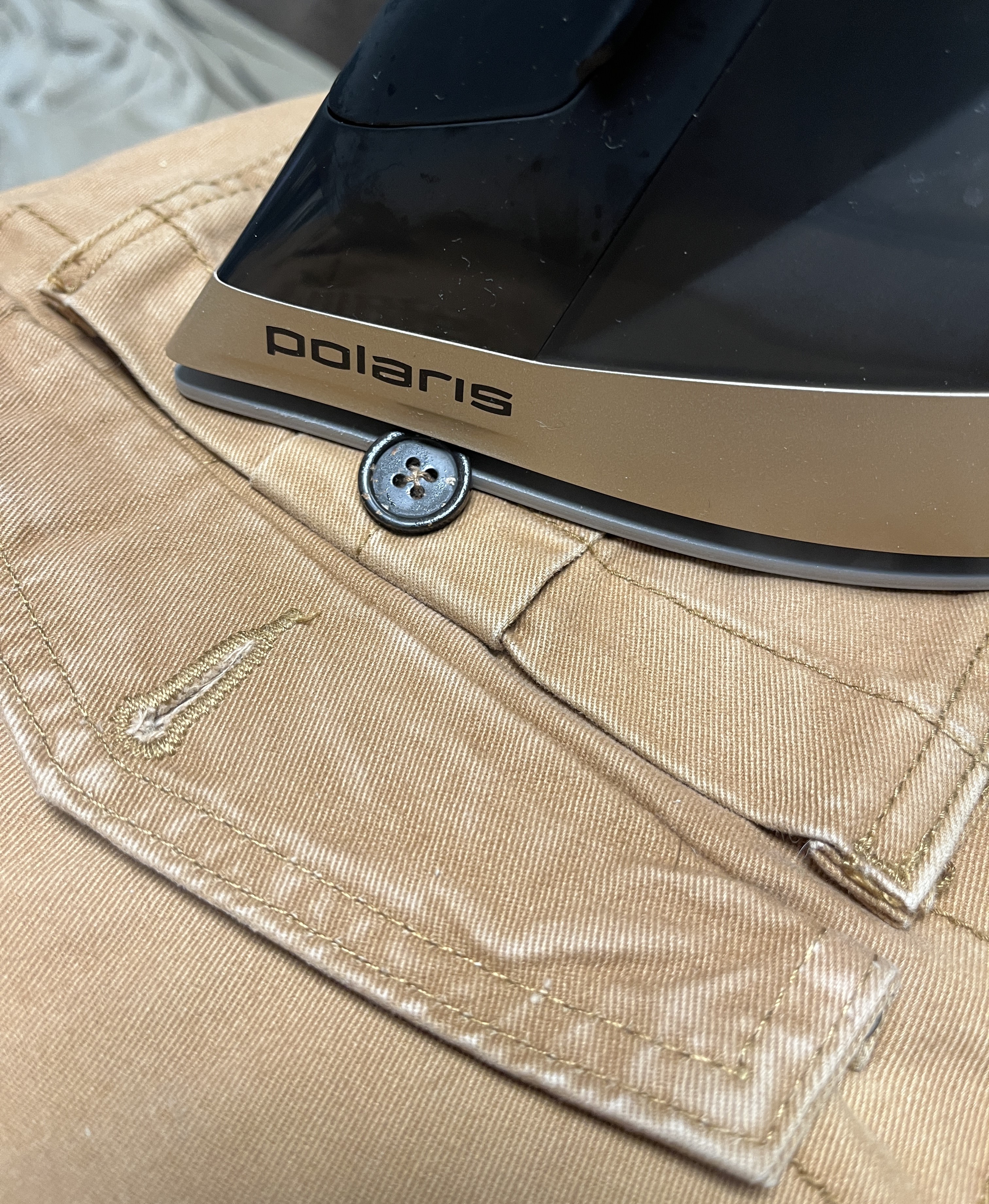 Режим с постоянной подачей пара позволил нам за 10 минут выгладить шорты и выровнять загнутые клапаны их карманов.